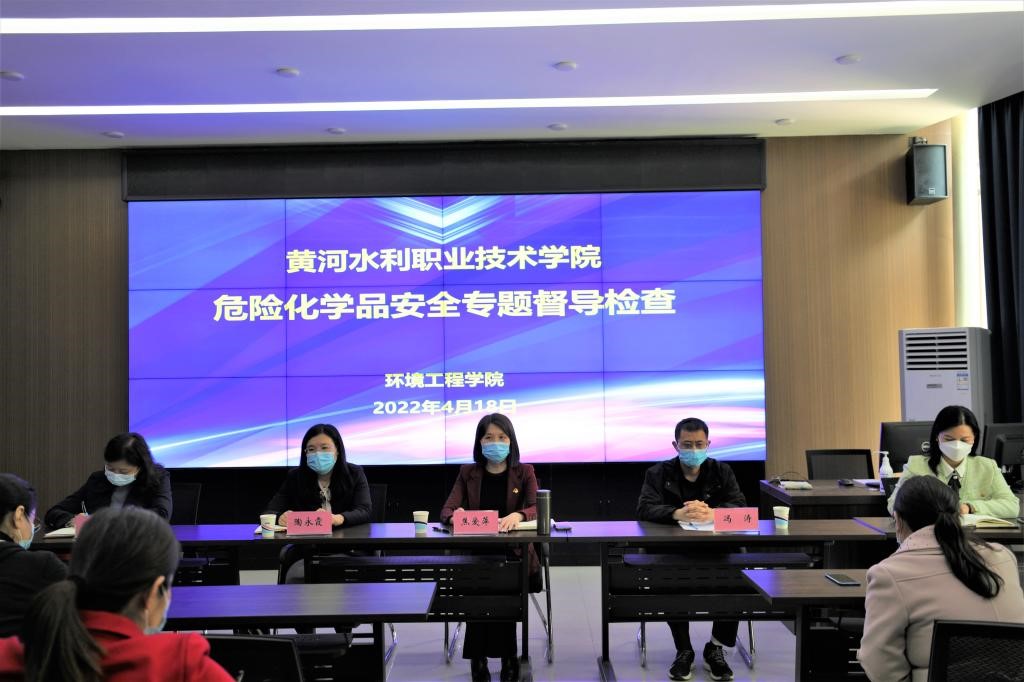 为进一步落实全国高等学校实验室安全工作会议精神,做好永利官网实训室安全工作,4月18日下午,副校长焦爱萍带领教务处处长陶永霞、教育教学督导室主任冯涛等深入环境工程学院开展危化品安全专题督导检查。环境工程学院党总支书记高琼、院长冯峰,实训中心全体教师、实训课教师等参加了检查汇报会,汇报会由冯峰主持。