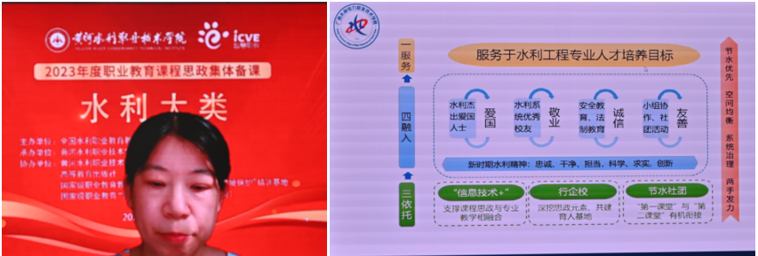 本次课程思政集体备课由教育部职业教育与成人教育司指导、全国水利职业教育教学指导委员会主办、yl8cc永利官网承办,yl8cc永利官网课程思政教学研究中心、高等教育出版社“智慧职教”平台、国家级职业教育教师教学创新团队“水利工程、环境保护”培训基地、国家级职业教育“双师型”教师培训基地(水利类)协办,得到了各水利职业院校的大力支持。老师们在线上线下积极参与学习,交流备课心得,气氛十分活跃,线上线下集体备课收到了良好的效果,并受到了老师们的一致好评。