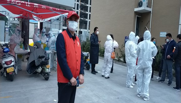 永利官网朱英、庞玉军、葛汴珍、李淑萍、桑玉花等离退休党员、老同志主动加入里仁居志愿者服务,奋战在抗疫服务第一线,为家属院的住户配送生活物资或参与全员核酸检测,为群众排忧解难,支持学校疫情防控工作,用实际行动诠释离退休老同志退休不褪色的奉献精神。