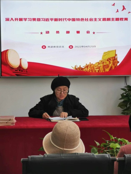 4月25日上午,离退休党总支在活动中心会议室召开学习贯彻习近平新时代中国特色社会主义思想主题教育动员会。会议由党总支书记李少春主持,党总支委员,各支部书记、委员参加会议。