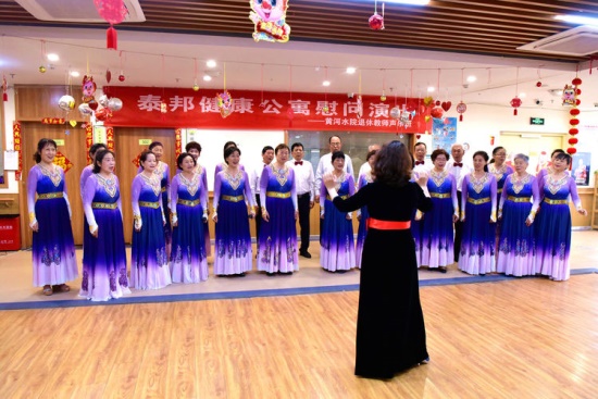 为了表达对从事养老行业人员的敬意,给养老院老人送去温暖和欢乐,2024年5月29日上午,校关工委常务副主任刘紫婷带领退休教师声乐班的老师们到泰邦健康公寓开展慰问演出活动。