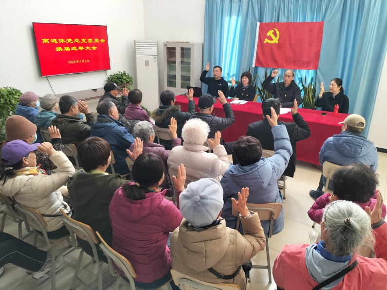 2025年3月6日,离退休党总支委员会换届选举大会在离退休职工活动中心如期举行。会上,上届书记李少春对任期内工作进行了全面总结,回顾了党总支在服务离退休党员、组织各类活动以及推动党建工作等方面所取得的成绩与经验。随后,大会按照选举流程,顺利选举产生了新一届委员会,现场气氛庄重而热烈。