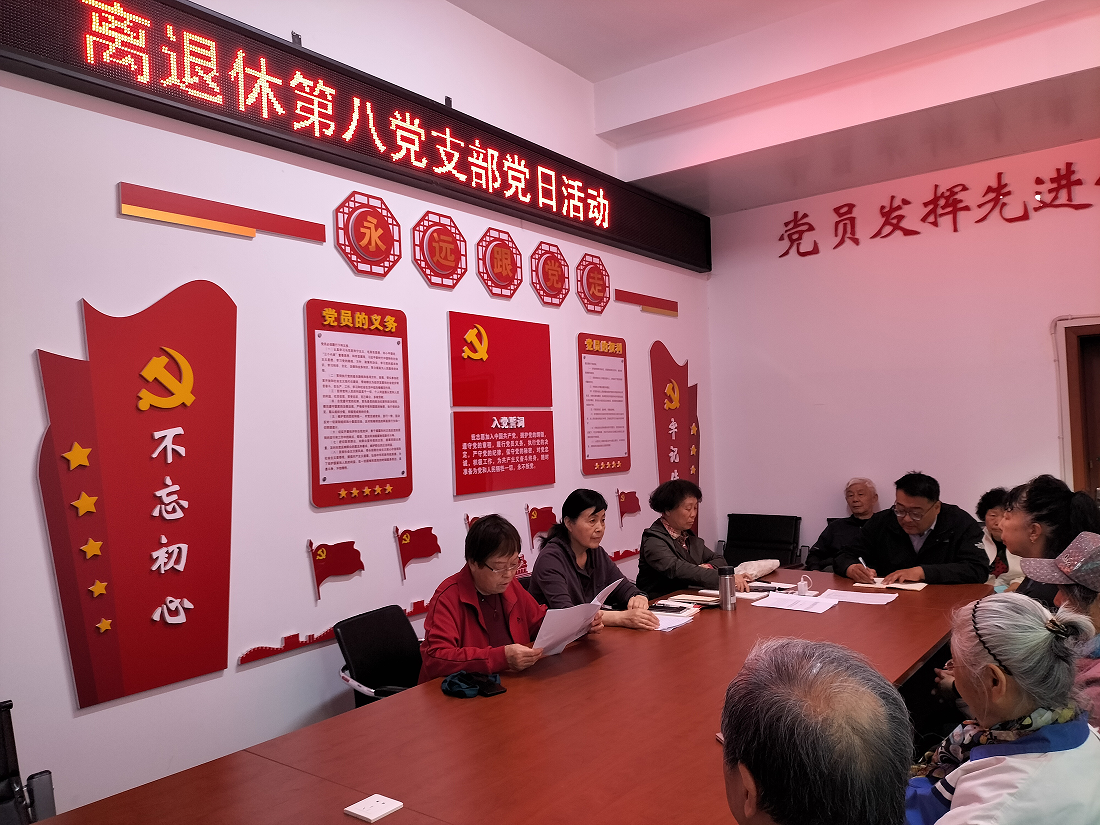 2025年4月10日退休第八党支部在里仁居离退休活动中心开展支部第一次党日活动。大会由支部书记朱爱华主持。