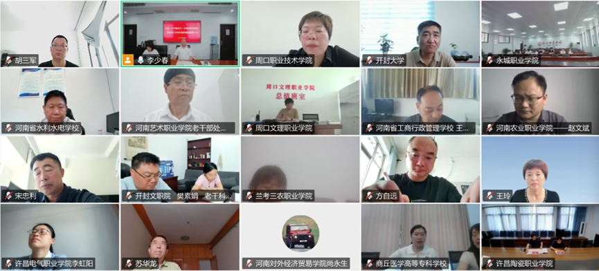 6月11日,河南省高职高专(厅直属中专)院校关工委豫东协作组召开线上年度工作会议,协作组17所院校关工委负责同志参会。永利官网作为协作组组长单位,积极组织参与会议。会议由永利官网关工委副主任李少春主持,省教育厅关工委副秘书长苏华龙出席会议并讲话。