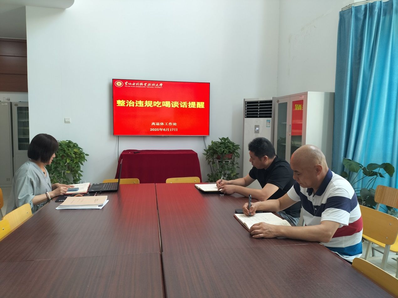 为深入贯彻落实中央八项规定精神,持续纠治“四风”问题,6月17日,离退休工作处召开整治违规吃喝谈话提醒会,为全体工作人员敲响廉洁警钟,推动作风建设走深走实。会议由党总支书记李少春主持,全体在职党员干部参加会议。