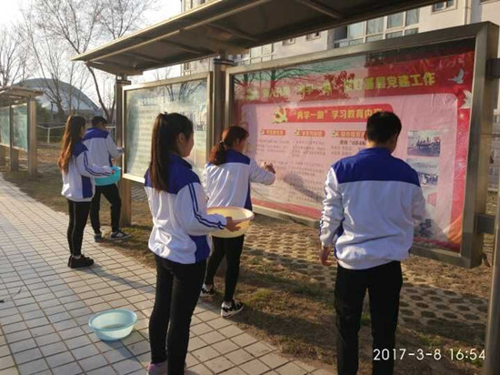 3月8日,环境与化学工程系志愿服务队开展了“学雷锋精神,我来义务劳动”——清洁学校宣传栏活动。志愿者们合理分工,不怕脏、不怕累,对宣传栏橱窗进行了清理,使宣传栏变得清新光亮、焕然一新。