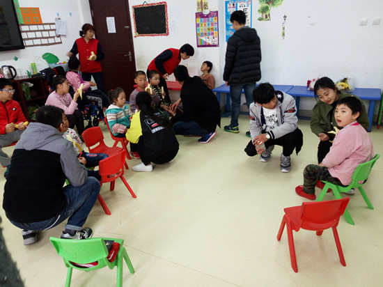 3月19日,自动化工程系志愿者协会的志愿者们携带水果、文具等物品来到市残联康复教育中心智障儿童康复训练部,开展了为期一天的志愿服务活动。志愿者分成两队,分别开展了听力残疾儿童与智力障碍儿童的特教,陪孩子们一起学习、玩耍。孩子们争先恐后地展示他们的才艺,教室里充满了欢声笑语。