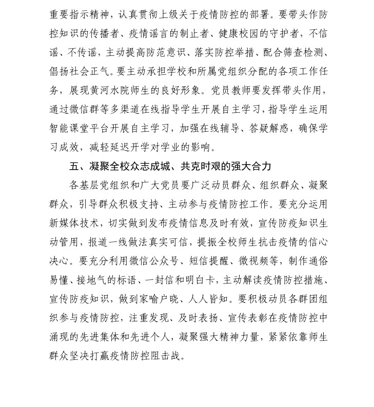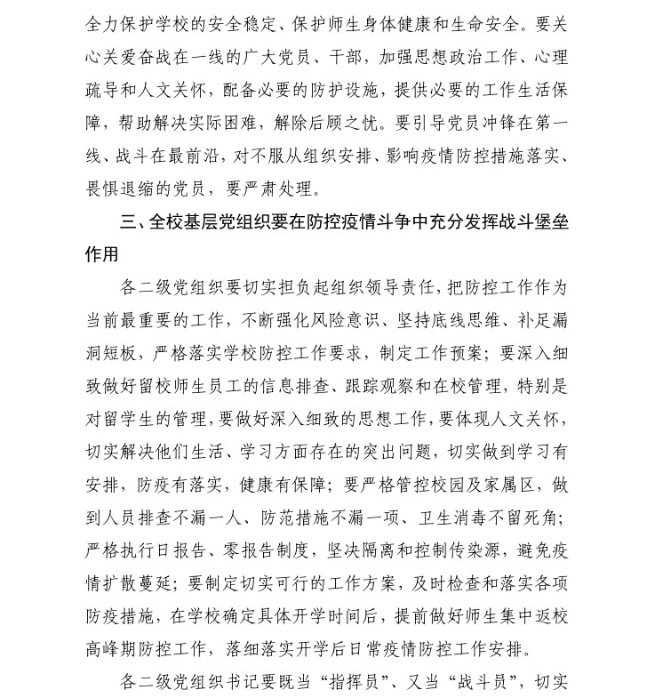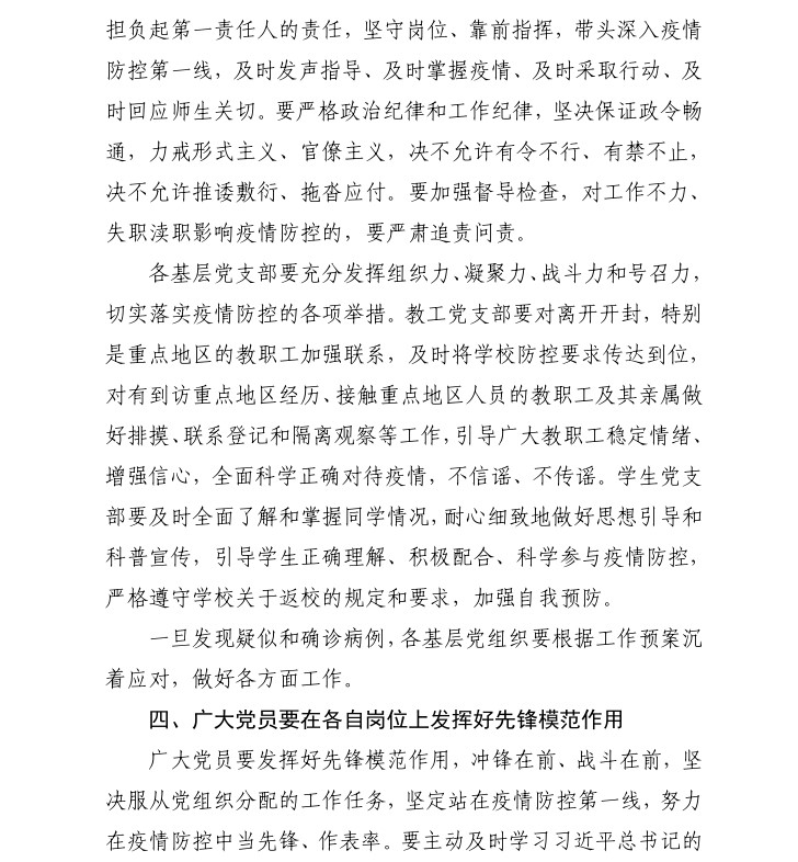 关于充分发挥全校基层党组织战斗堡垒和广大党员先锋模范作用坚决打赢疫情防控阻击战的通知
