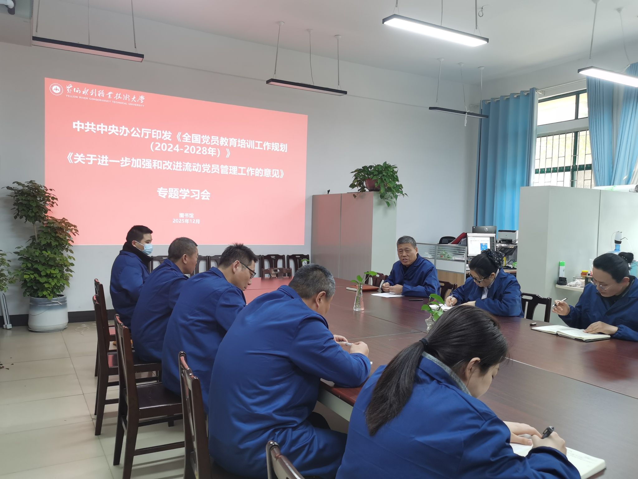 为贯彻落实《黄水2025年下半年政治理论学习及思想道德教育计划》学习要求,12月16日,全校各部门、各单位分别组织教职工传达学习中共中央办公厅印发的《全国党员教育培训工作规划(2024-2028年)》和《关于进一步加强和改进流动党员管理工作的意见》,加强和改进永利官网党员教育培训工作,锻造过硬党员队伍,不断增强党的创造力、凝聚力、战斗力,提高党的执政能力,引导师生新形势下保持共产党员先进性。(供图:各相关部门)