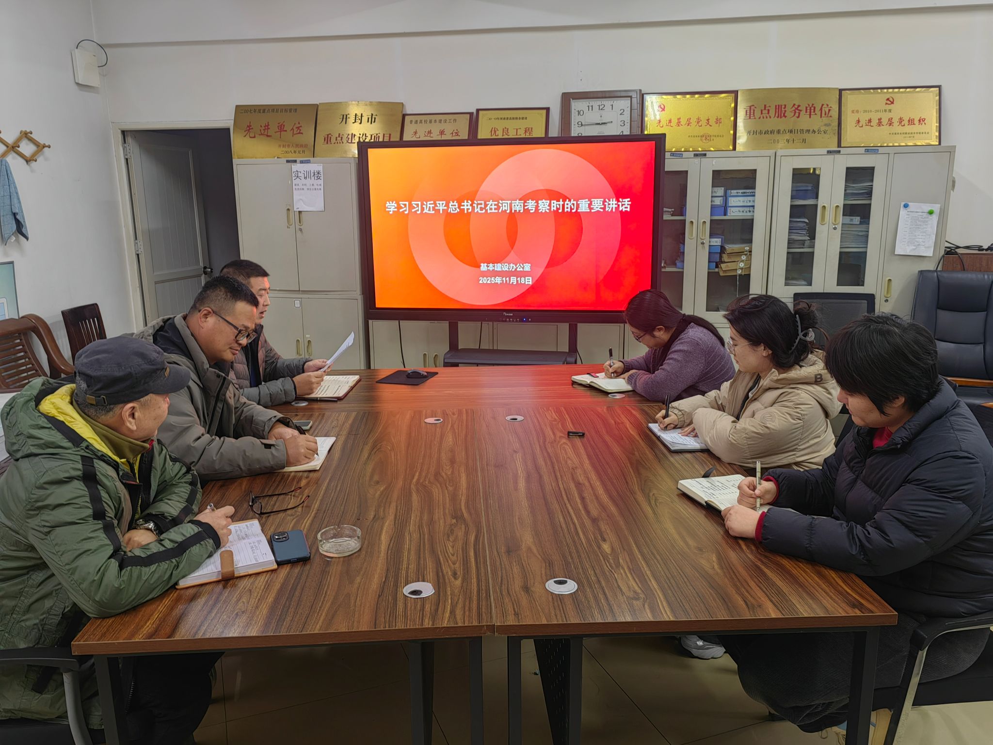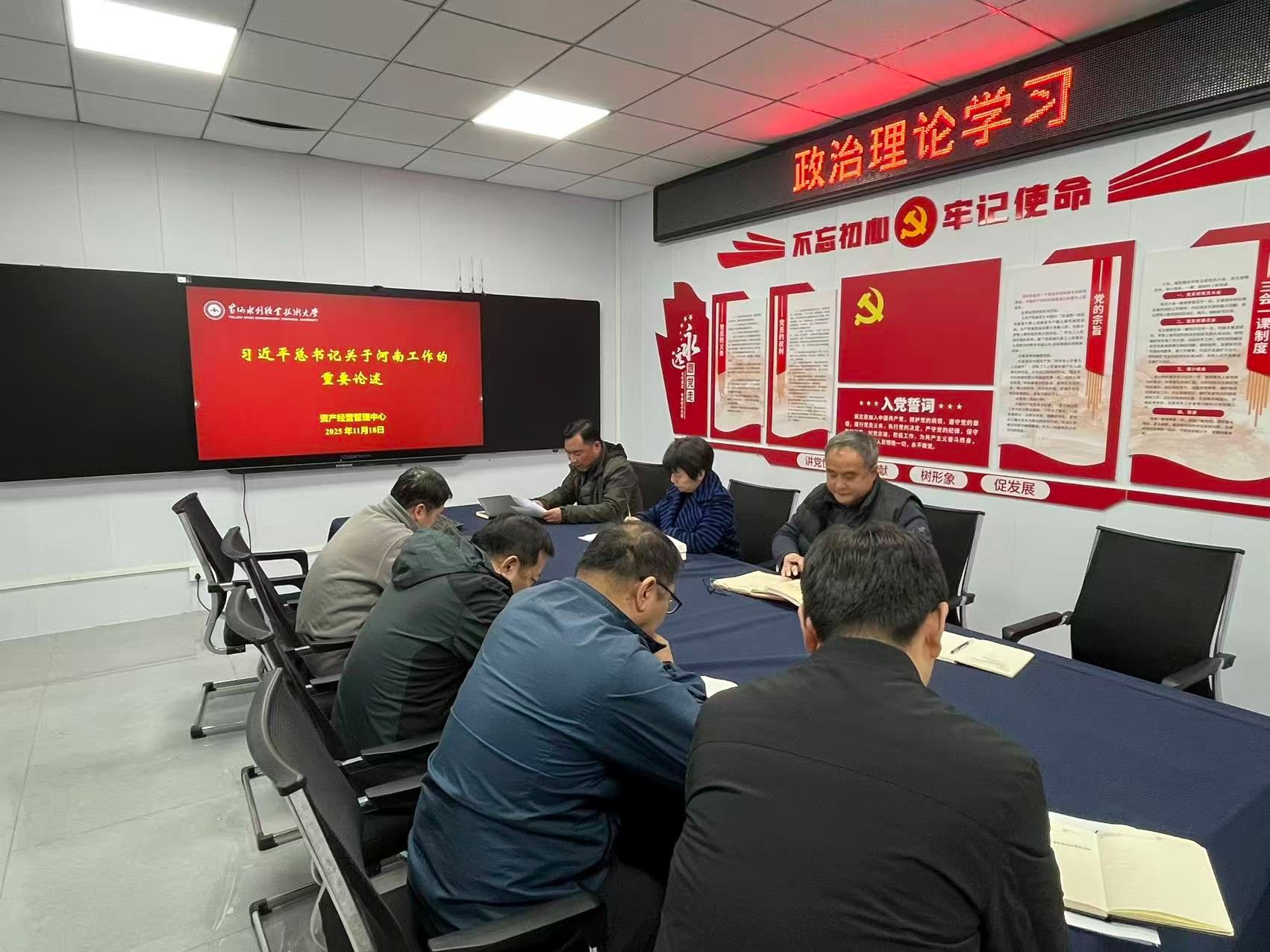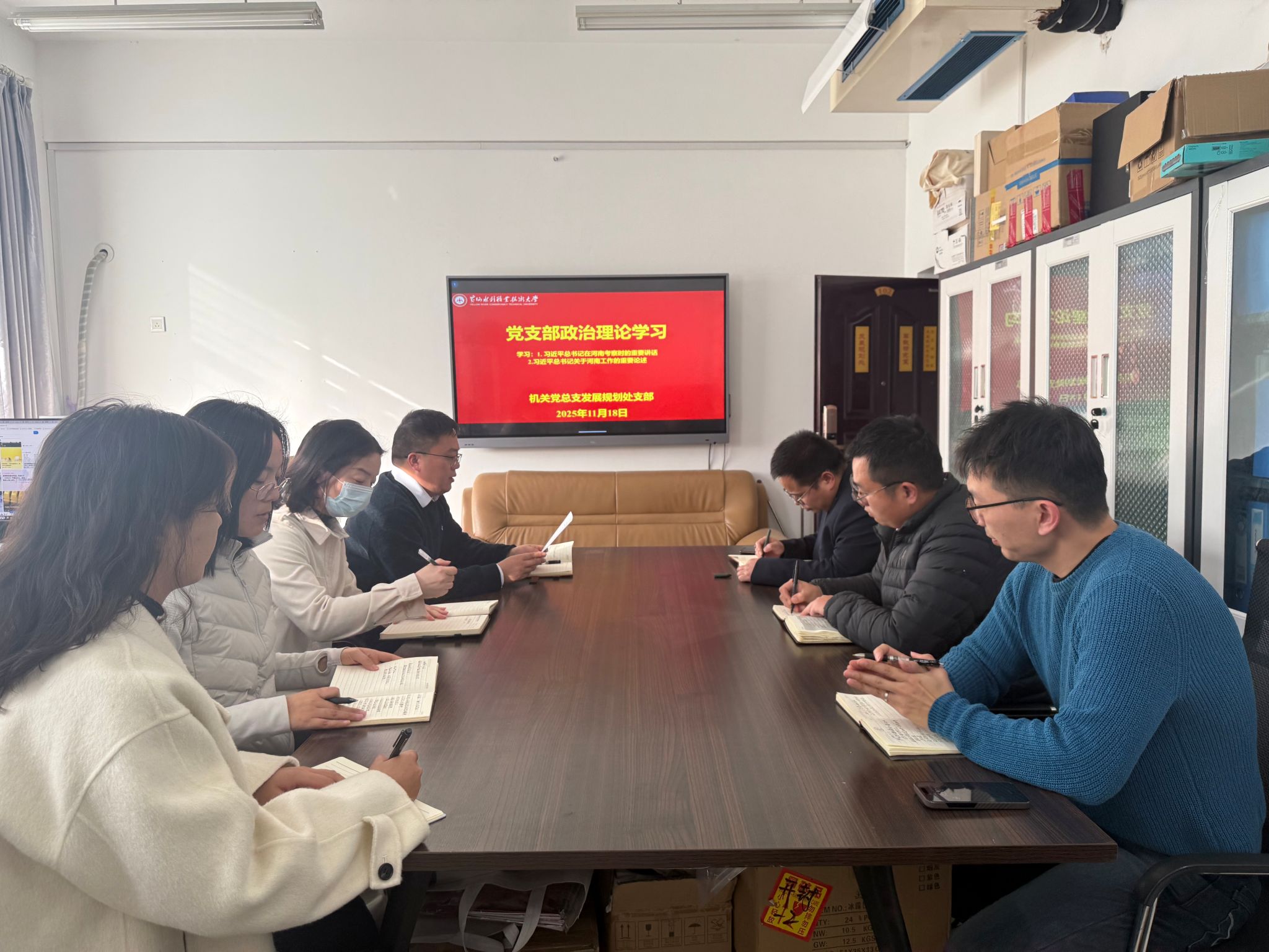 为贯彻落实《黄河水利职业技术大学2025年下半年政治理论学习及思想道德教育计划》学习要求,11月18日,全校各部门、各单位分别组织教职工传达学习习近平总书记在河南考察时的重要讲话和习近平总书记关于河南工作的重要论述,引导全校教师深刻领会习近平总书记重要讲话精神的核心要义和实践要求,自觉将讲话精神融入日常教学和理论研究工作中,引导广大青年学生坚定理想信念,投身强国建设。(供图:各相关部门)