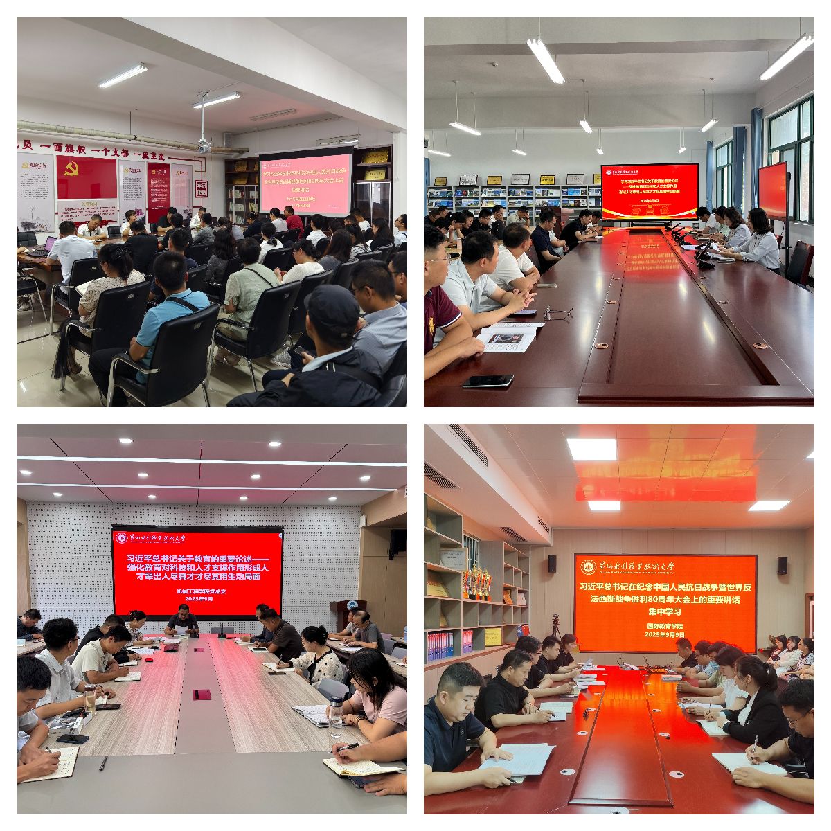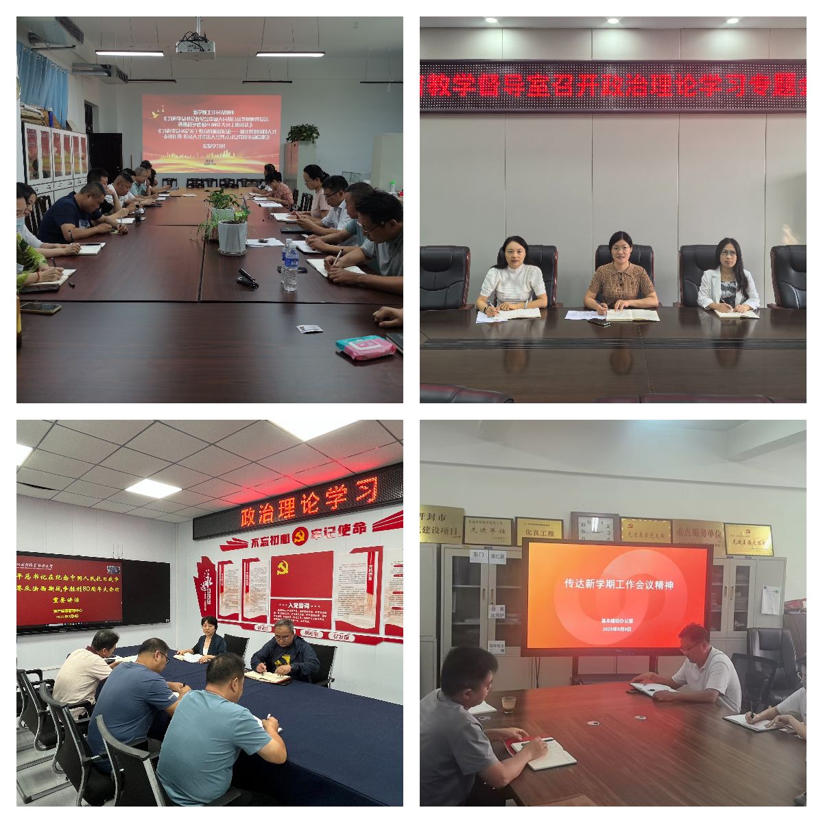 为贯彻落实《黄河水利职业技术大学2025年下半年政治理论学习及思想道德教育计划》学习要求,9月9日,全校各部门、各单位分别组织教职工传达学习新学期工作会议精神,并专题学习习近平总书记在纪念中国人民抗日战争暨世界反法西斯战争胜利80周年大会上的重要讲话和习近平总书记关于教育的重要论述--强化教育对科技和人才支撑作用 形成人才辈出人尽其才才尽其用生动局面,引导全校师生从抗战历史中汲取精神力量,将伟大抗战精神融入立德树人全过程,以实际行动服务国家战略需求,推动教育强国建设,为强国建设和民族复兴伟业培养更多高素质的技能人才。(供图:各相关部门)