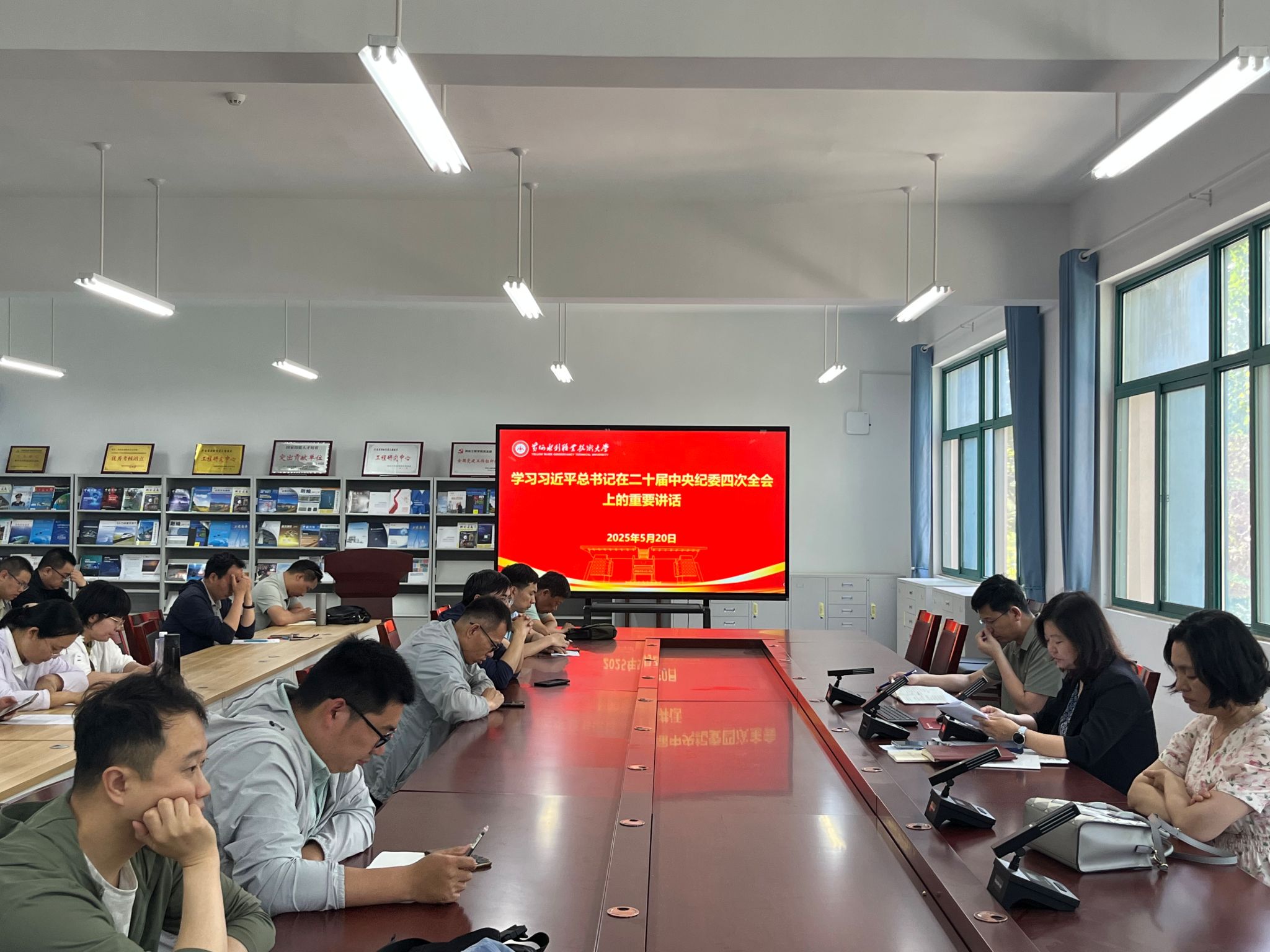为贯彻落实《黄河水院2025年上半年政治理论学习及思想道德教育计划》学习要求,进一步提升教职工理论学习的制度化、规范化水平和政治理论素养。5月20日,全校各部门、各单位分别组织教职工专题学习习近平总书记在二十届中央纪委四次全会上的重要讲话、《中国共产党纪律处分条例》、《中国共产党巡视工作条例》和《yl8cc永利官网重点领域关键环节监督工作实施办法》,进一步促进永利官网党员干部和党员教师强化纪律规矩意识,筑牢廉洁从教防线,落实立德树人根本任务,弘扬新时代教师道德风尚,为永利官网教育事业高质量发展提供保障。(供图:各相关部门)