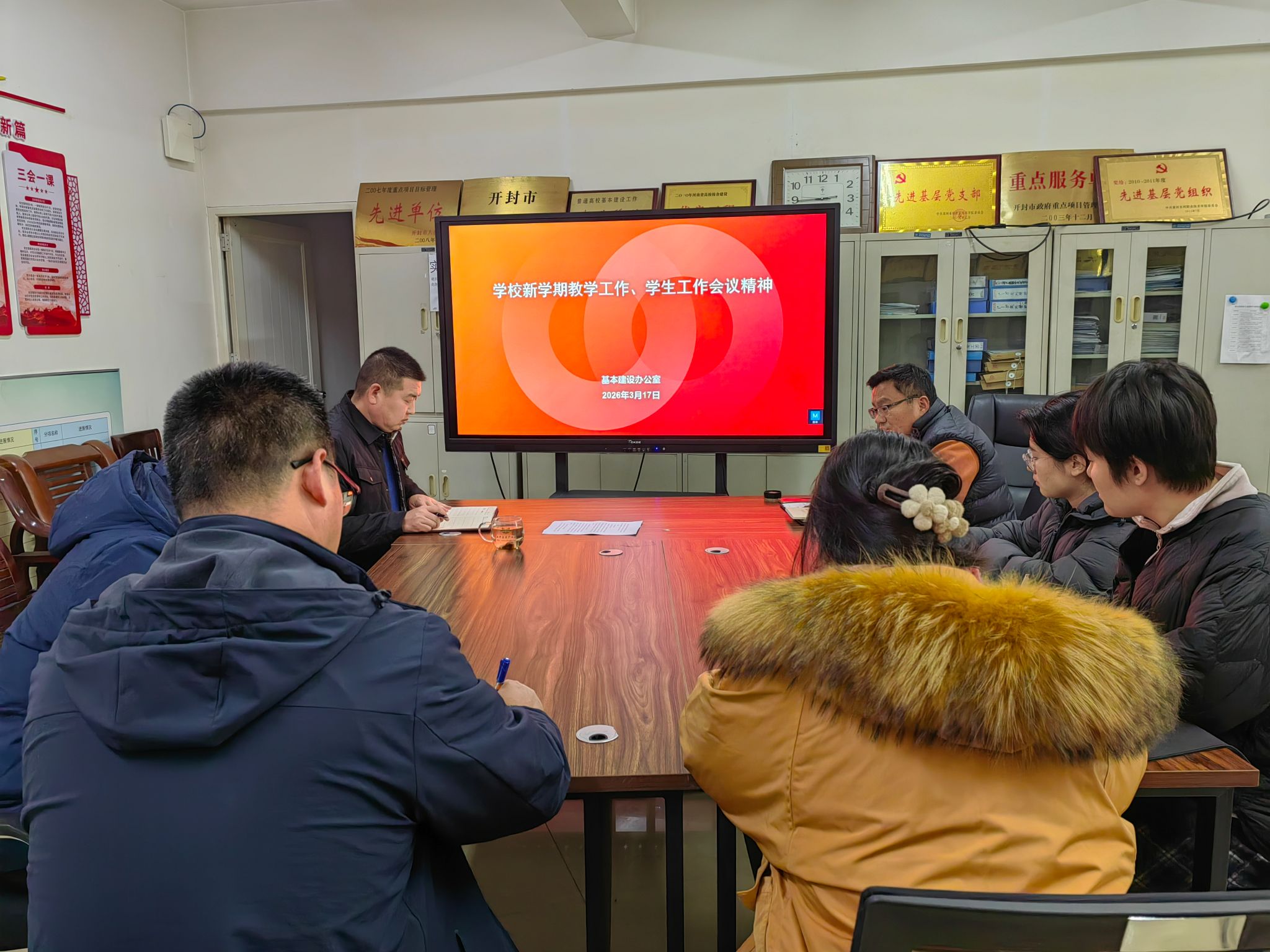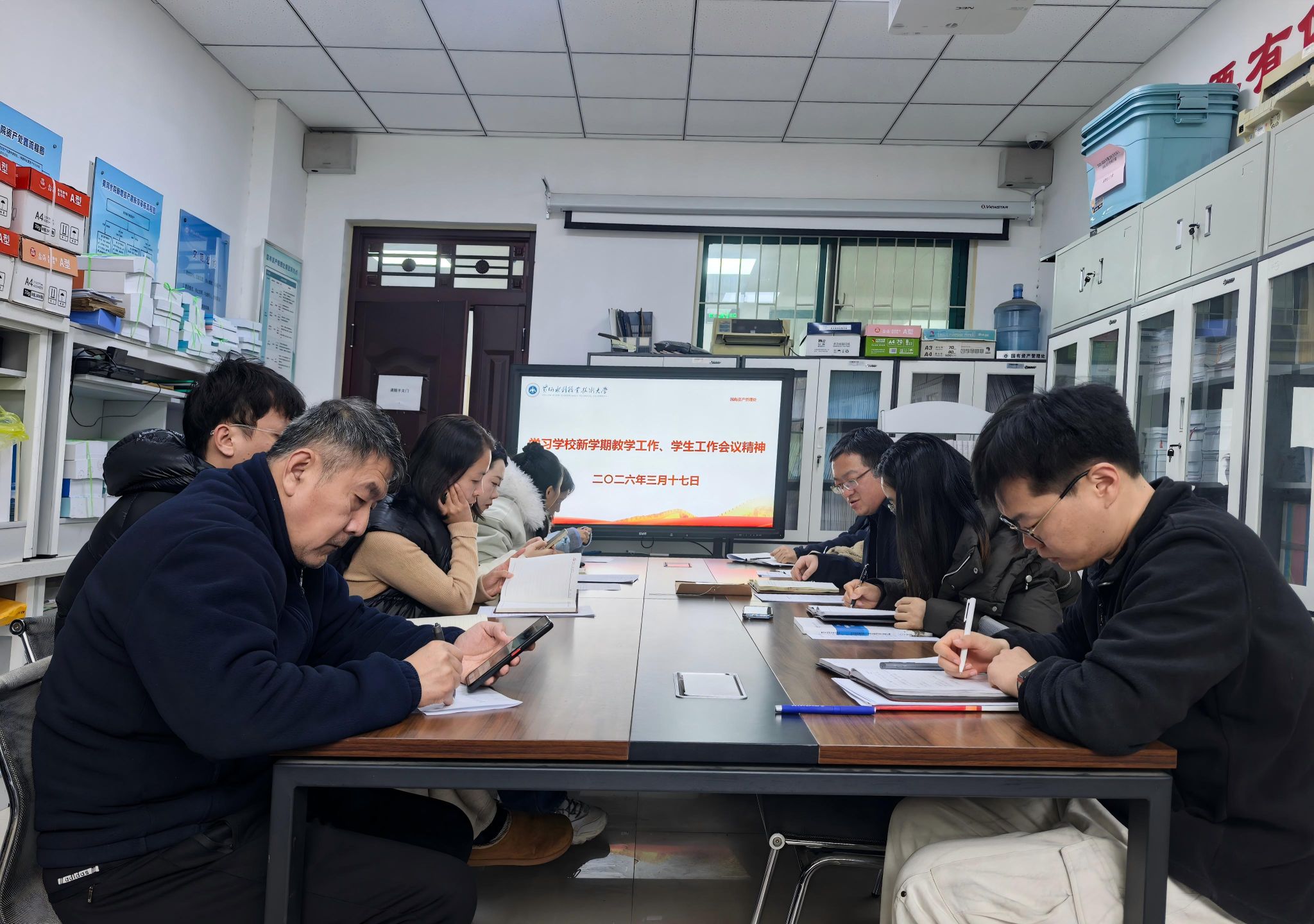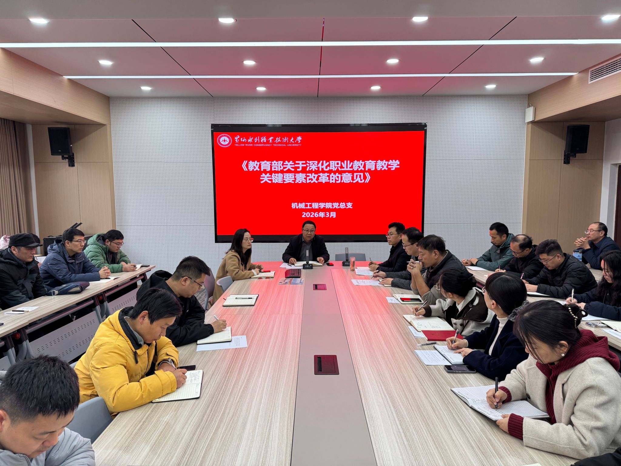 为贯彻落实《黄河水利职业技术大学2026年上半年教职工政治理论学习及思想道德教育计划》学习要求,3月17日,全校各部门、各单位分别组织教职工传达学习学校2026年度工作务虚会精神,学校新学期教学工作、学生工作会议精神,2026 年全国两会精神和《教育部关于深化职业教育教学关键要素改革的意见》,引导全校教师坚持以习近平新时代中国特色社会主义思想为指导,深入贯彻党的二十大和二十届历次全会及全国教育大会精神,落实立德树人根本任务,为推动教育高质量发展、建设教育强国贡献力量。(供图:各相关部门)