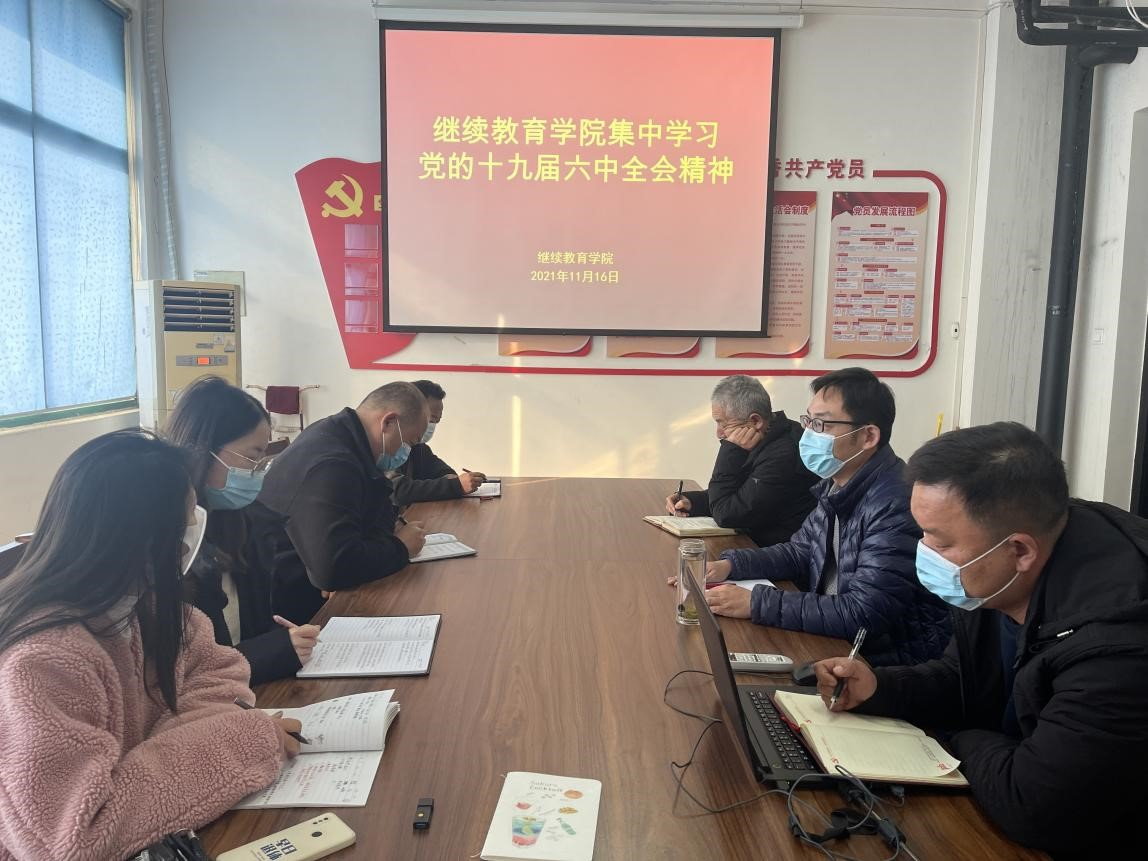 继续教育学院集中学习党的十九届六中全会精神