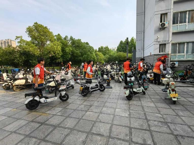 志愿者们身着统一马甲,分散到校园各电动车停放点,向过往同学耐心讲解规范停车要求,并主动帮助整理歪斜、无序停放的车辆。
