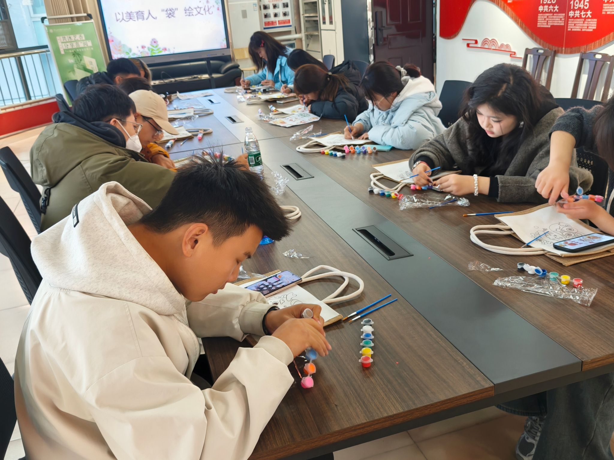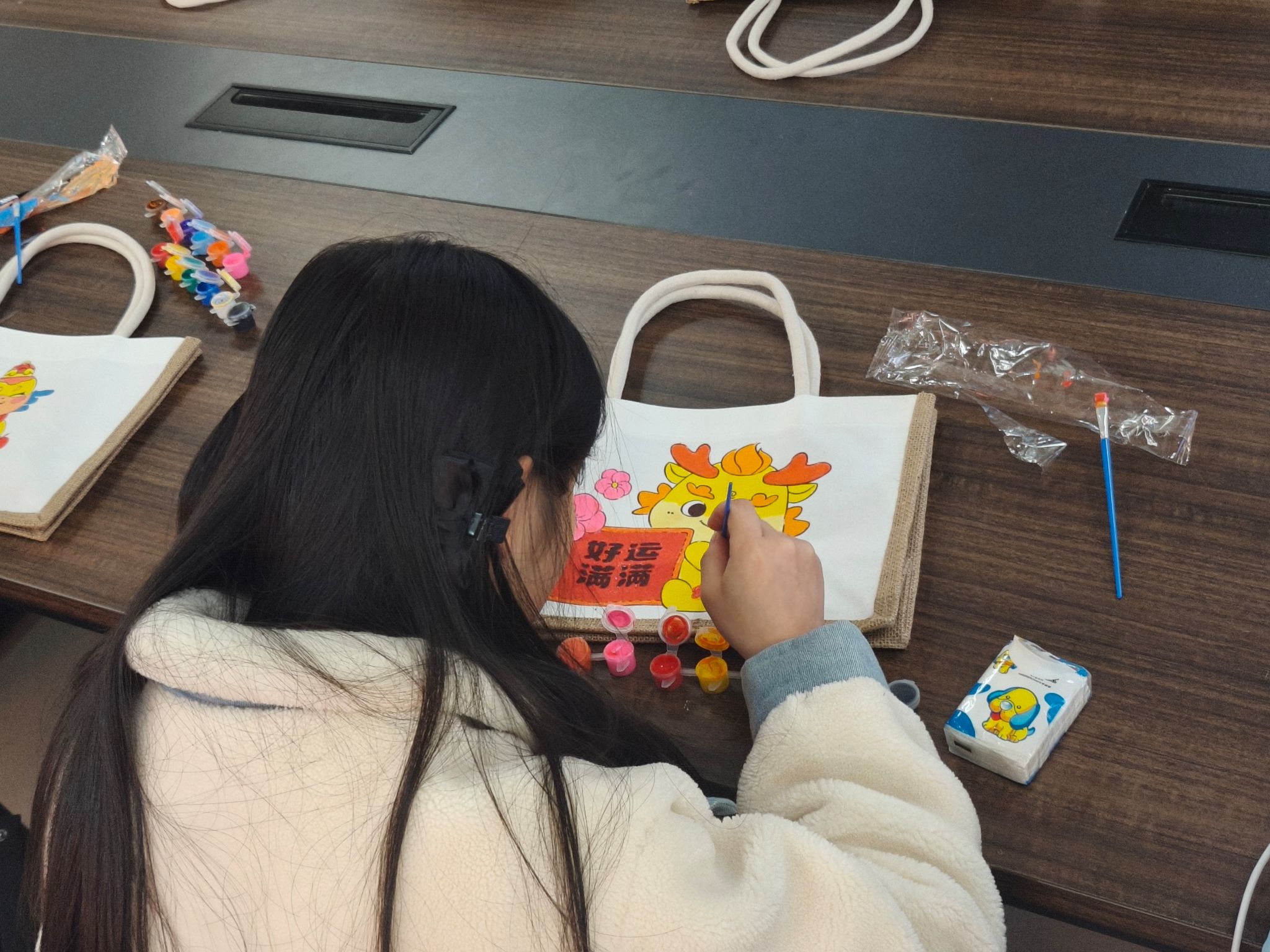 为丰富校园文化生活,以美育滋润心灵,12月9日,“一站式”学生社区党工委举办了以“以美育人,‘袋’绘文化”为主题的手提袋涂鸦活动。