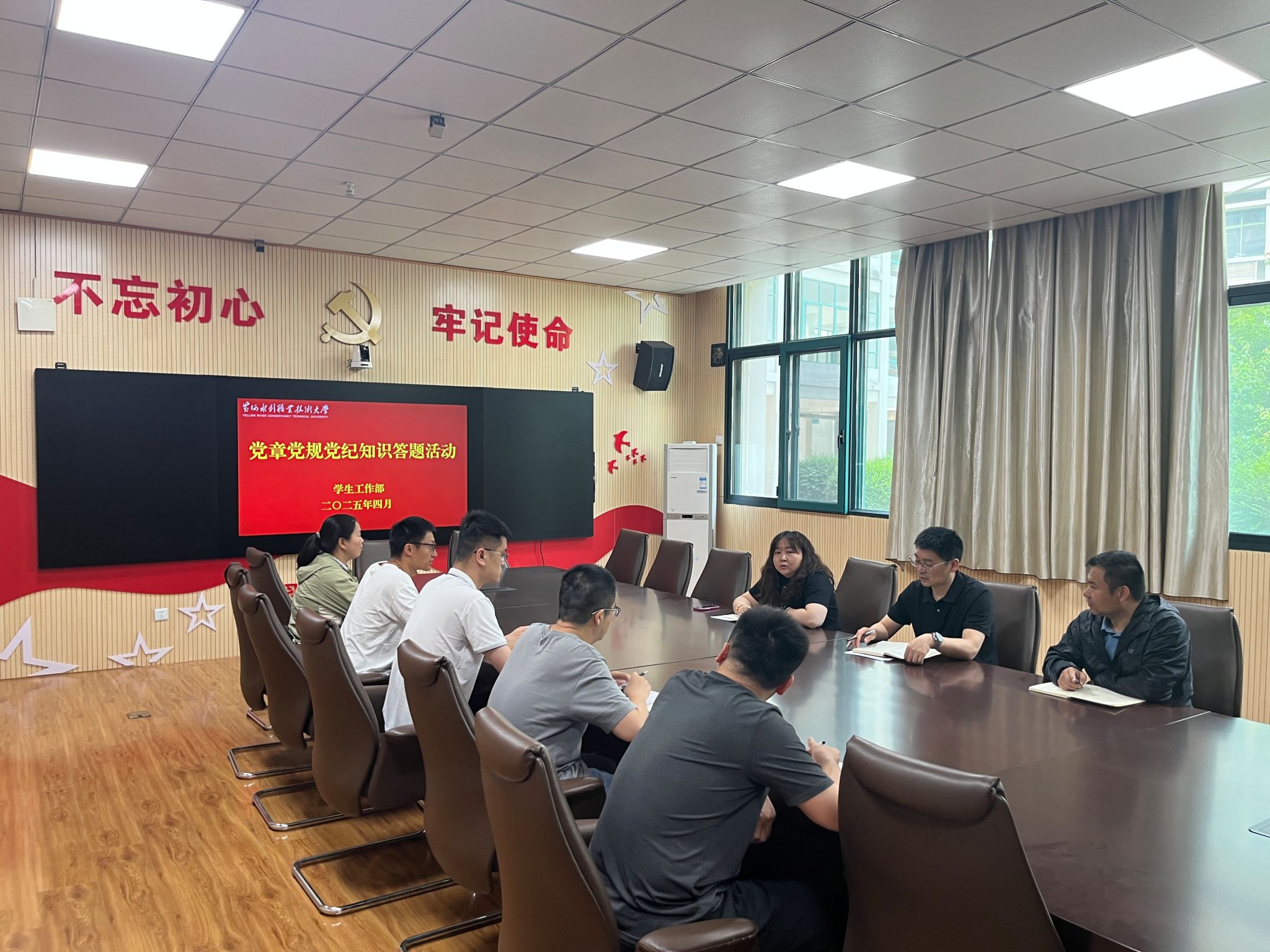 为强化部门成员纪律意识,提升党性修养, 4月29日,学生工作部精心组织党章党规党纪知识答题活动。活动由学生工作部部长商坤主持,部门全体同志参加。