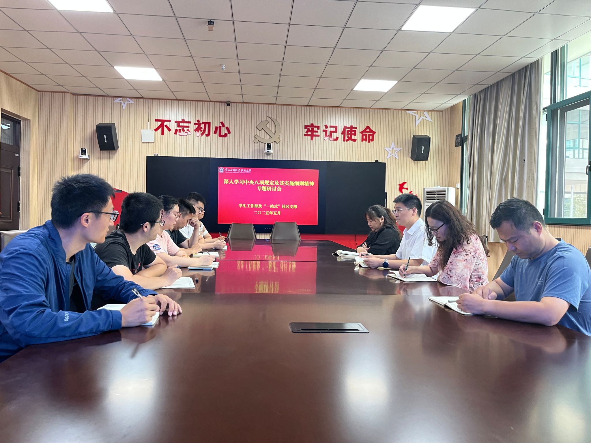 为进一步强化纪律意识,筑牢思想防线,5月30日,学生工作部及“一站式”社区支部召开中央八项规定及其实施细则精神专题研讨会。研讨会由学生工作部及“一站式”社区支部书记商坤主持,支部全体党员参加。