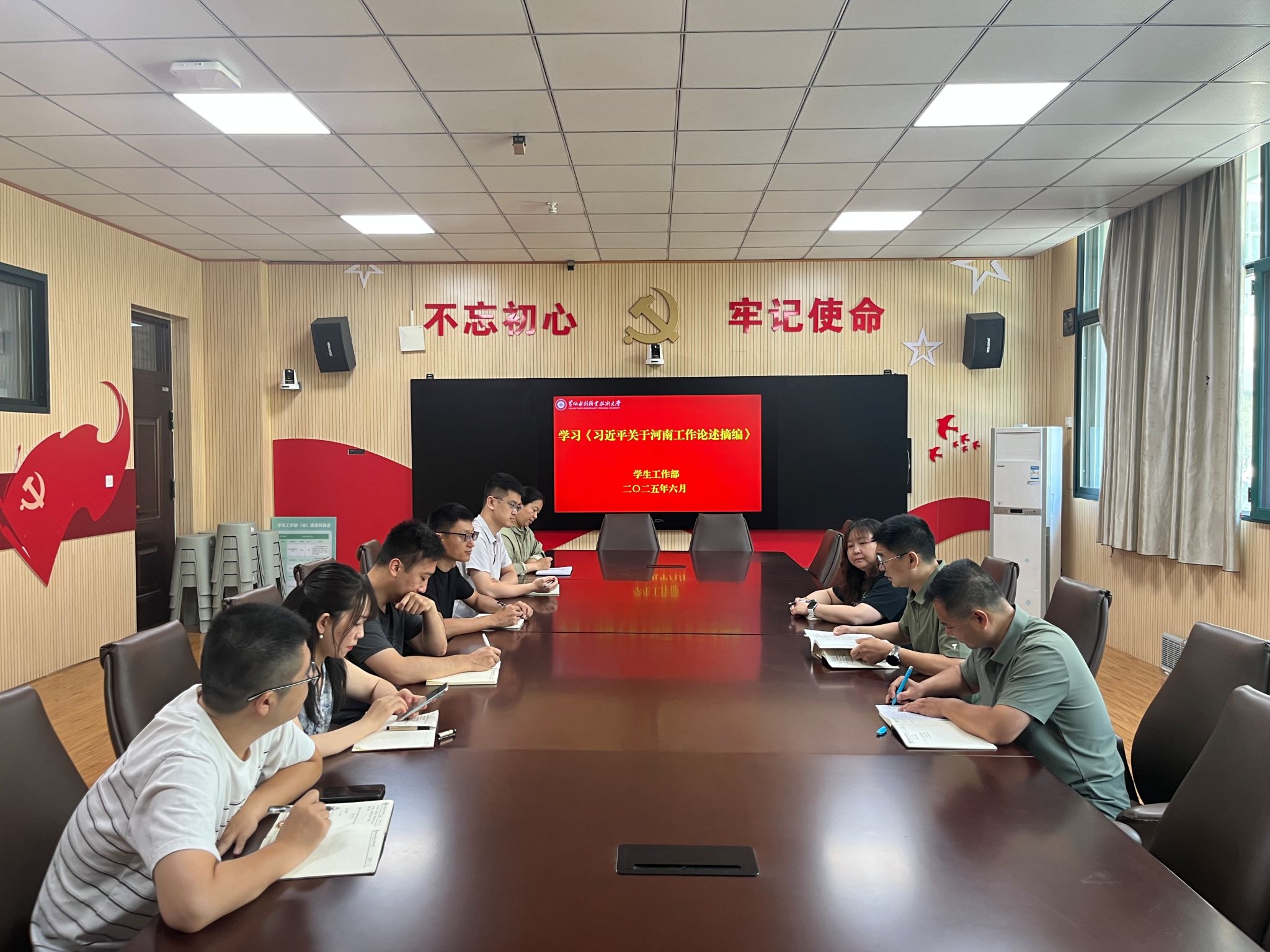 6月17日,学生工作部组织开展了《习近平关于河南工作论述摘编》专题学习会议,旨在深刻领会习近平总书记对河南工作的重要指示精神,探索其在高校学生工作中的贯彻路径。会议由学生工作部部长商坤主持,部门全体成员参会。