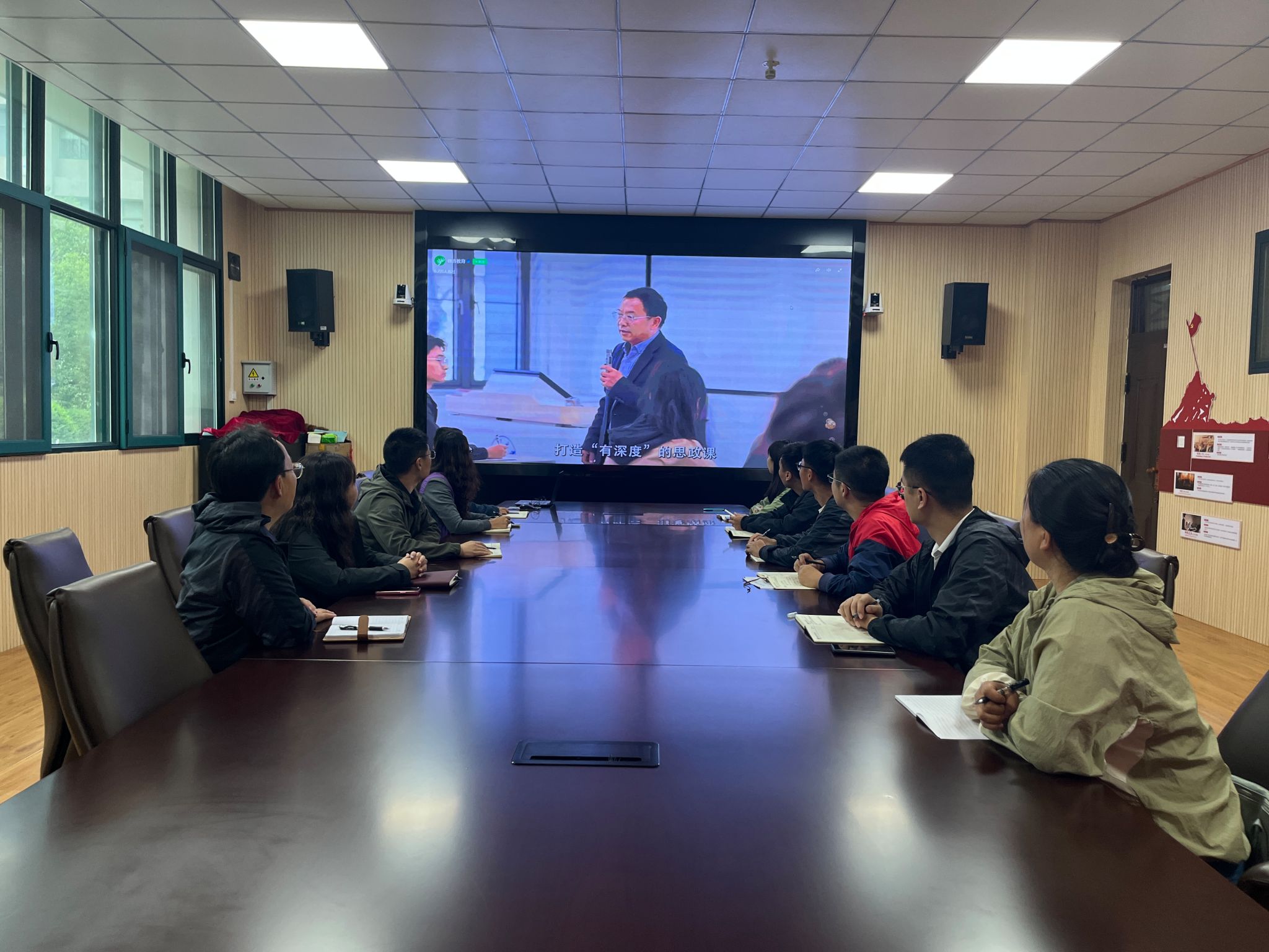微党课围绕“为全面建成教育强国凝聚强大的思政引领力”这一主题,从理论阐释、实践案例、使命担当等方面进行了系统讲解,深刻阐明了思政引领是推动教育强国建设的核心动力,为高校学生工作者指明了努力方向。全体党员认真聆听、仔细记录,不时围绕微党课内容展开思考交流。