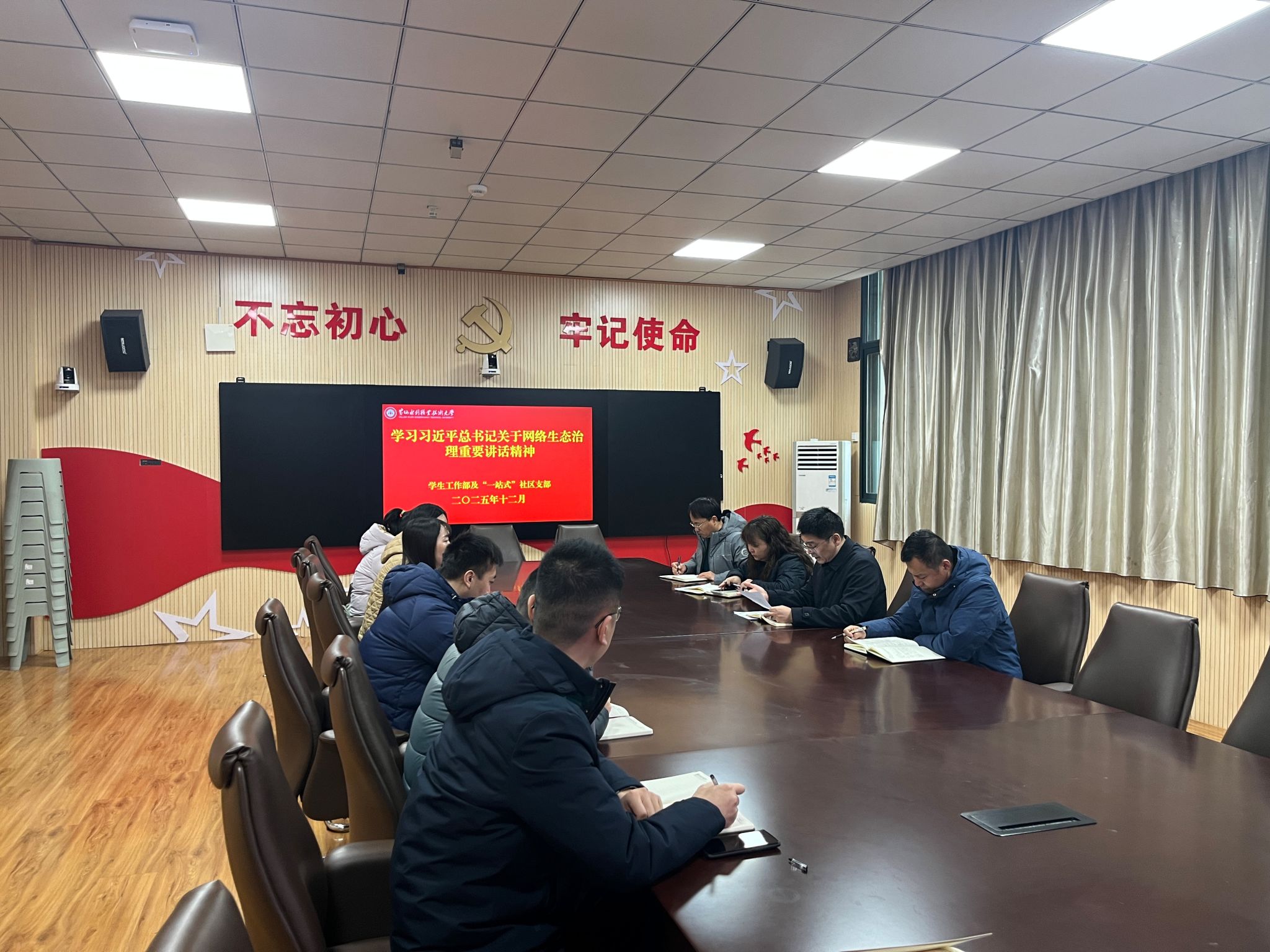为深入贯彻落实习近平总书记关于网络生态治理的重要讲话精神,切实提升支部党员网络思政工作能力,筑牢校园网络意识形态安全防线,营造风清气正的校园网络空间,12月19日,学生工作部及“一站式”社区支部在JX5111组织全体党员开展专题学习活动,专题学习研讨习近平总书记关于网络生态治理的重要讲话精神,引导党员教师以高度的政治自觉和行动自觉,在校园网络生态治理中主动担当作为。