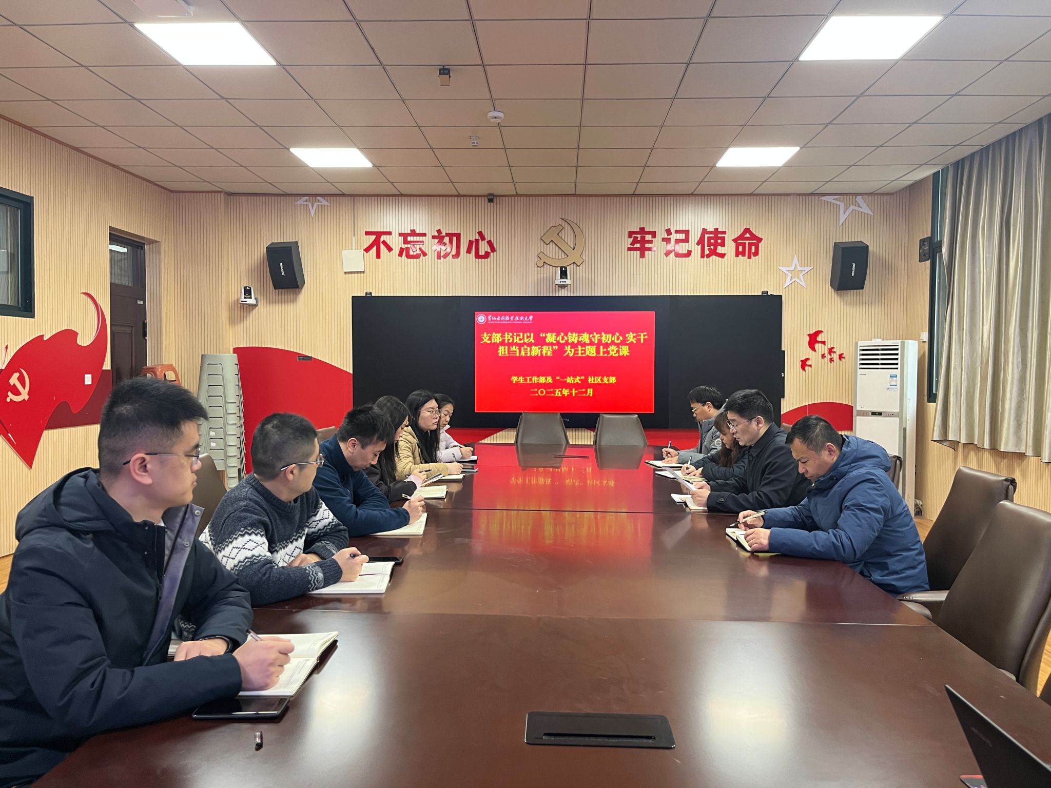 为凝聚党支部党员思想共识,强化责任担当,推动年度学生工作圆满收尾与来年工作谋篇布局,12月26日,学生工作部及“一站式”社区支部书记商坤以“凝心铸魂守初心 实干担当启新程”为主题,为党支部全体党员讲授专题党课。