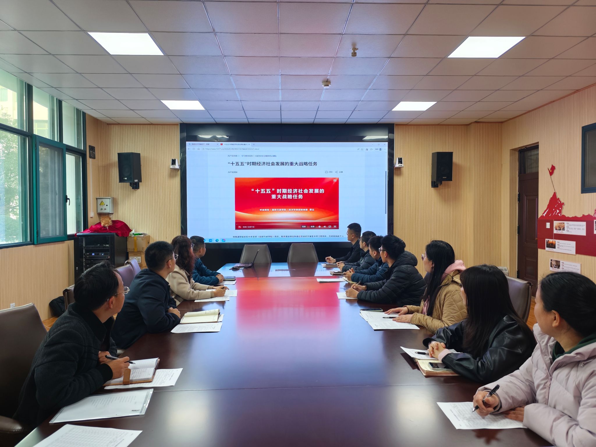 专题视频系统解读了“十五五”时期经济社会发展的重点领域、攻坚方向和实施举措,全体党员认真观看、深刻领悟,明晰了国家发展战略内涵,也找准了高校育人工作的切入点和着力点。