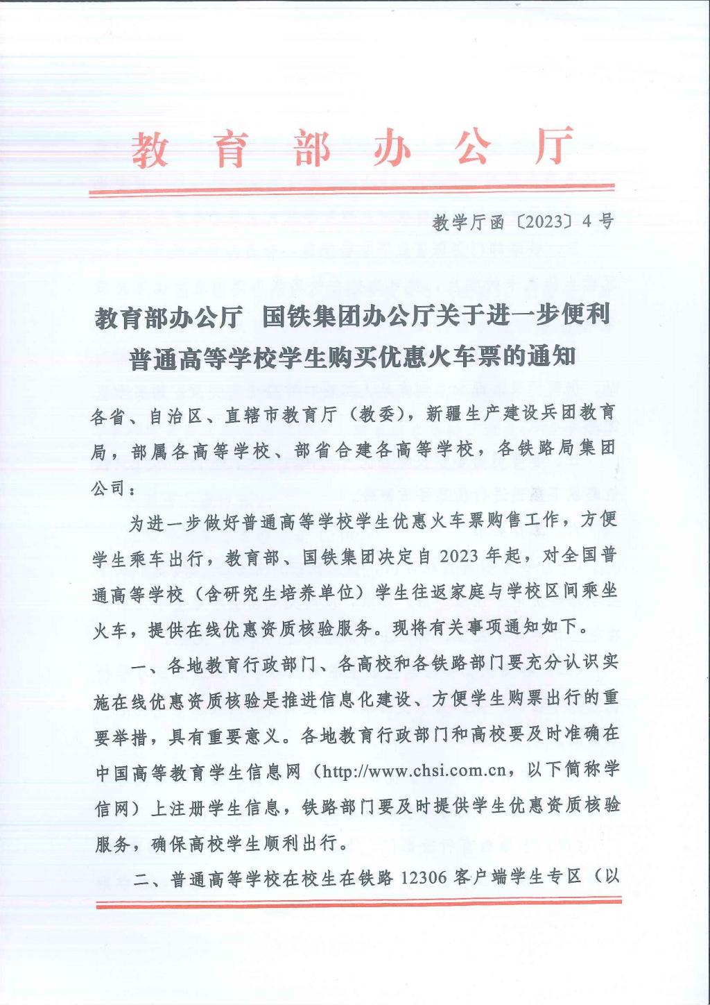 教育部办公厅 国铁集团办公厅关于进一步便利普通高等学校学生购买优惠火车票的通知.pdf