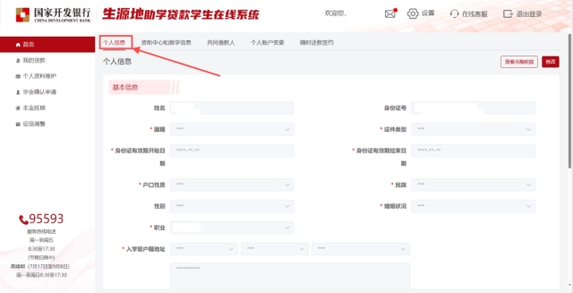 点击“个人资料维护”,核实、完善个人信息及共同借款人信息,家庭地址、工作单位、个人联系方式等通讯信息,尤其要确保个人手机号码正确,系统会在还款日前,通过手机号码发送还款提示信息等。如信息有误或需更新,修改并填写完整后,点击提交,即完成信息修改。