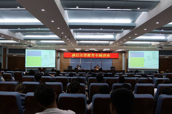 讲座上,刘艳艳老师以“助贷成就梦想 开行伴你成长”为主题,从国家开发银行与国家助学贷款的渊源、业务内容、个人征信及征信执行信息约束等几个方面进行了讲解;她详细介绍了国家助学贷款办理和支付宝还贷的关键时间节点、个人征信中违约案例等内容,使学生明确了国家助学贷款的政策、意义及个人诚信的重要性;同时,她还就什么是诚信、大学生树立诚信意识的意义、积极还贷对个人的好处等三个方面做了详细的论述,使大学生更好地了解了国家助学贷款现状和还款要求。最后,她提醒大家诚实申请贷款、合理使用贷款、按时归还贷款,珍爱信用记录、享受幸福人生。