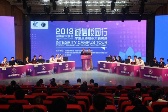 河南省大学生“诚信校园行”学生资助知识大赛由河南省教育厅、中国人民银行郑州中心支行、中国银行业监督管理委员会河南监管局、国家开发银行河南省分行联合主办,旨在宣传学生资助政策、普及金融基础知识,培养大学生诚信意识和金融风险防范意识。此次大赛分为初赛、复赛和决赛三个阶段,自2017年10月起,历时近7个月。初赛由全省134所本专科高校自行组织,复赛分为七个赛区进行,永利官网承办了本次大赛的复赛区G组赛事,并以第一名的好成绩晋级决赛,最终产生的36支高校代表队参加了全省决赛。