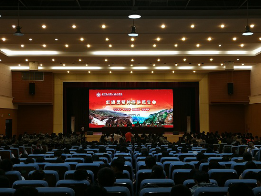 河南工业大学团委书记梁朗就举办此次红旗渠精神宣讲报告会的特殊意义发言,他指出,上世纪六十年代,林县人民在极端恶劣的自然环境下,铸造“人工天河”红旗渠,这不仅铸造了一个伟大的水利工程,更是树立了伟大的精神丰碑——“自力更生、艰苦创业、团结协作、无私奉献”的红旗渠精神。黄河水院的毕业生杰出代表、伟大工程红旗渠的设计者之一吴祖太烈士,是第一位为红旗渠献身的人,也是为红旗渠献身的81位烈士中的唯一外乡人。这种红旗渠精神,值得我们学习和继承,使之永放光芒。