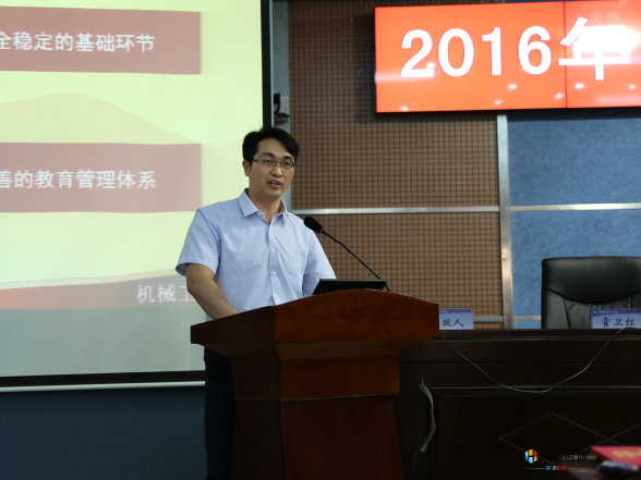 刘书记在开班典礼上回顾总结了上一学年的整体情况,代表校党委对学生工作进行了表扬和肯定。一是安全稳定工作扎实有序,成绩显著。全体学工人员不顾个人得失,从大局出发,不顾严寒酷暑,兢兢业业、认认真真,奉献在学生工作的第一线,为我们学校的发展做出了巨大贡献,取得了一学年无安全事故的重大成绩;二是完善了学生工作的各项规章制度,包括11项学生管理工作制度、辅导员工作和管理制度、班主任工作条例等;三是多项工作取得了重大突破,在“河南省辅导员职业能力大赛”获得一等奖,全省高校“诚信校园行”活动获得一等奖,“挑战杯”河南省大学生课外学术科技作品竞赛取得多项优异成绩等。刘书记对参加本次培训班的同志提出三点要求:第一:要提高认识、明确职责。充分认识培训的重大意义,端正学习态度,遵守培训纪律。增强工作的责任感和使命感,不断适应新形势、新任务,做好学生的领路人;第二:珍惜机会、加强学习。利用好本次培训班的机会,认真学习和研讨校党委书记许琰在庆祝建党95周年合唱展演上发表的重要讲话;第三:结合实际,学做结合。特别是现在正在开展的“两学一做”学习教育对我们广大党员提出了明确要求,各位都是党员,而且从事的是学生的思想教育工作,更应该结合实际工作搞好学习,不断提升业务水平,增强工作的针对性、实效性和感染力,结合自身实际和工作实际,从实际从发,结合自身学,带着问题学,做到学以致用、理论联系实际。