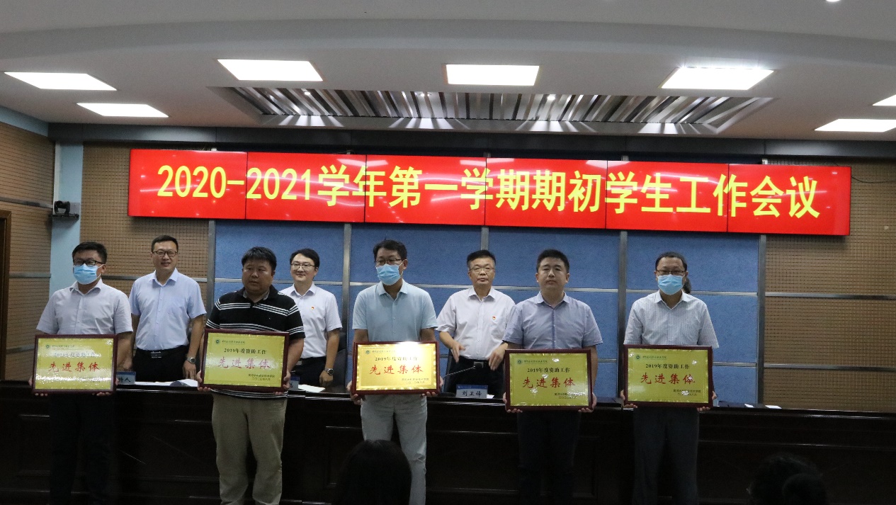 会上,刘许亮宣读了《关于表彰返校复学疫情防控及2019年度学生工作“先进集体”与“先进个人”的决定》,刘卫锋等人为受表彰的集体颁发了奖牌。