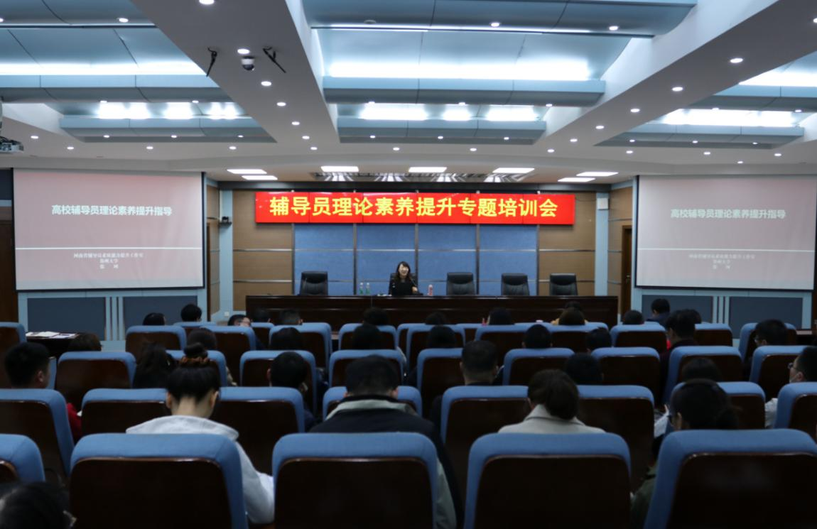 为不断增强永利官网辅导员队伍建设,推进永利官网辅导员队伍职业化、专业化发展,提升永利官网辅导员理论素养和工作能力,3月25日下午,永利官网在3号实训楼学术报告厅举办了辅导员理论素养提升专题培训会。各学院党总支副书记、分团委书记、全体辅导员和学工部相关人员参加培训会,会议由学生处思想政治教育科科长陈志冉主持。