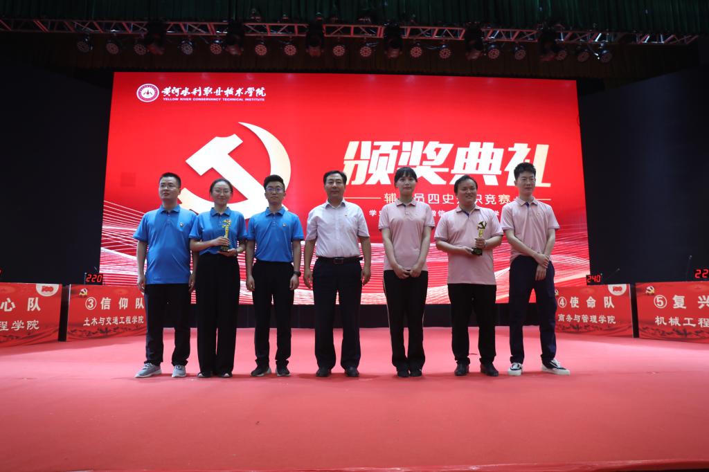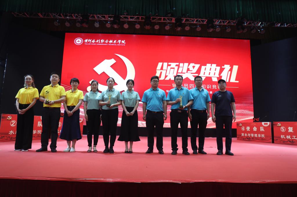 经过激烈的角逐,由水利工程学院辅导员代表组成的“初心队”获得冠军奖;由商务与管理学院辅导员代表组成的“使命队”、环境工程学院辅导员代表组成的“筑梦队”获得一等奖;由土木与交通工程学院辅导员代表组成的“信仰队”、机械工程学院辅导员代表组成的“复兴队”、艺术与设计学院辅导员代表组成的“理想队”获得二等奖;旅游学院代表队、土木与交通工程第二代表队、水利工程学院第二代表队、信息工程学院代表队、测绘工程学院第二代表队和测绘工程学院第一代表队获得三等奖。