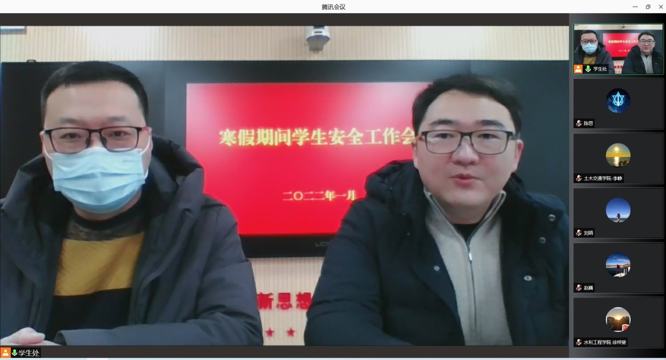 1月28日上午,永利官网召开寒假期间学生安全工作线上会议,学生处处长李聪、副处长柴杉、各学院学生工作主管领导、全体辅导员参加了会议。会议由学生处副处长柴杉主持。