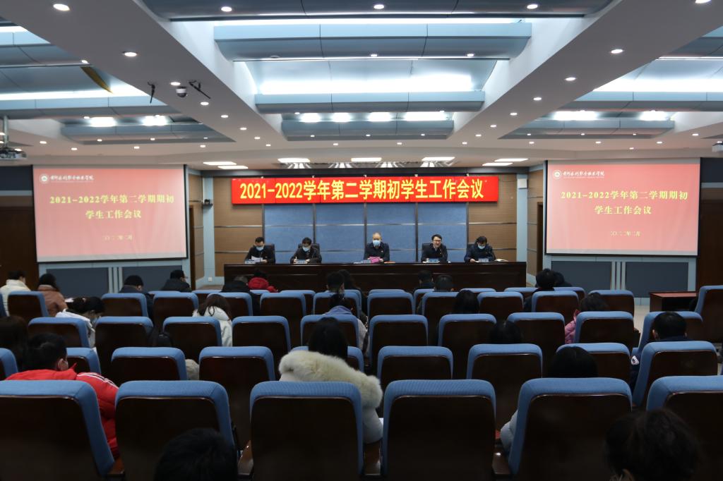2月16日上午,永利官网在3号实训馆学术报告厅召开新学期学生工作会议。校党委副书记、工会主席杨士恒出席会议并讲话,学生工作部(处)、“一站式”学生社区党工委、团委全体人员、各学院学生工作主管领导以及全体辅导员参加会议。会议由学生工作部副部长柴杉主持。
