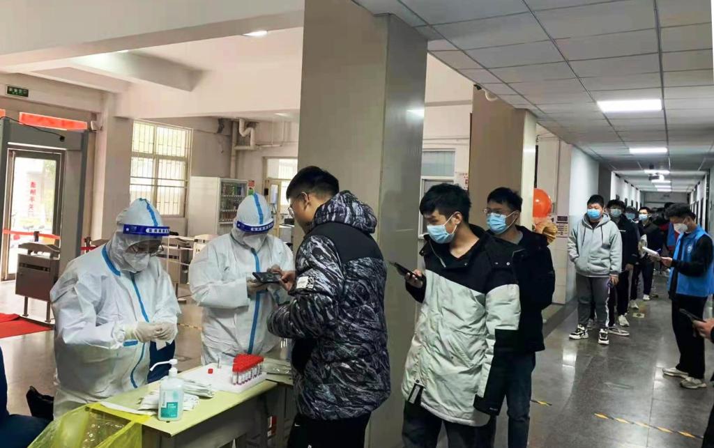 经过学生工作专班的认真部署,各宿舍楼长、层长的切实推进,经过4个多小时顺利完成共计12000余名在校生的核酸检测工作。接下来,学校将继续按照疫情防控要求,密切关注疫情形势变化,落实落细防控举措,全力守护全校师生员工生命安全和身体健康。
