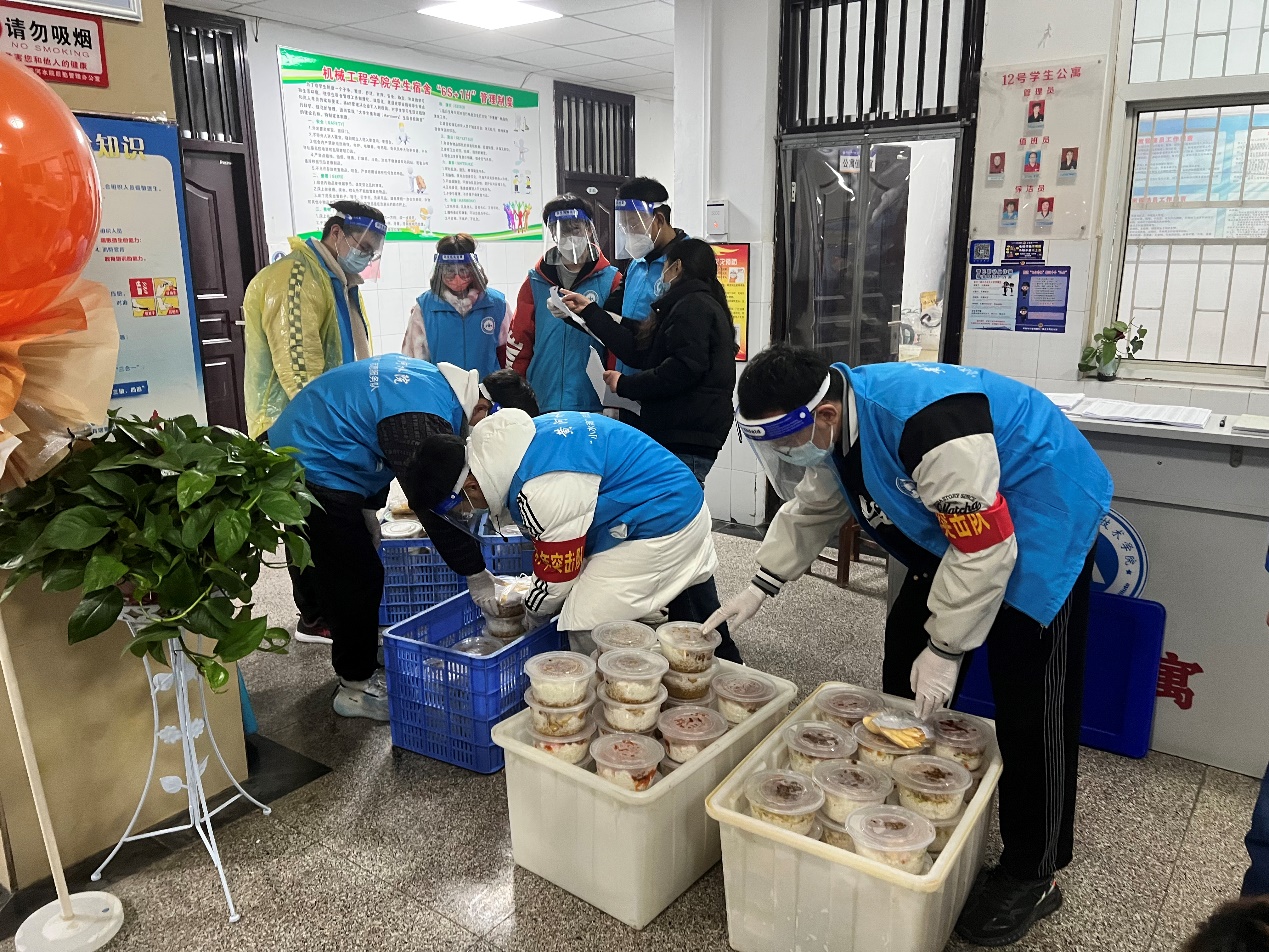 团委志愿者肩负配餐任务