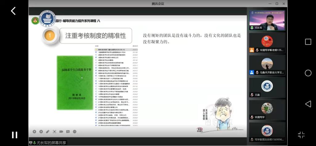 本次培训课程紧密结合全国高校思想政治工作会议、全国教育大会相关精神,围绕辅导员日常工作,通过专题授课、在线视频直播、案例分析、在线答疑等方式开展。培训特邀辽宁农业职业技术学院党委学工部部长、辽宁省优秀辅导员、辽宁省高校大学生思想政治教育成果一等奖获得者尤长军副教授围绕辅导员日常工作“五大育人”体系构建、辅导员识、选、用、育学生干部的“六三六三”法则、辅导员班级文化打造的“四大方面”、学生管理工作的语言艺术与沟通技巧等4个主题进行讲解与研讨,使辅导员们进一步提升了对岗位职责的认知,掌握了学生管理策略与技巧,拓宽了工作思路,明确了工作的努力方向,为今后更好地开展学生工作打下坚实基础。参会老师纷纷表示备受启发,受益良多。