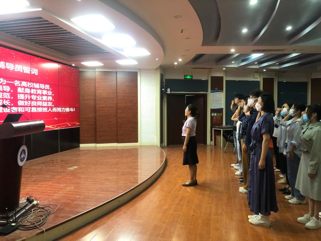 结班仪式上,全体新任辅导员由水利工程学院辅导员赵诗捷领誓,一同进行了辅导员誓词宣誓。随后,学生工作部部长李聪、副部长柴杉、副部长牛钰为受聘的辅导员颁发聘书。庄重的辅导员宣誓和聘任仪式赋予了新任辅导员生涯起点的神圣感,增强了育人的使命感,也强化了勇于担当的责任感。