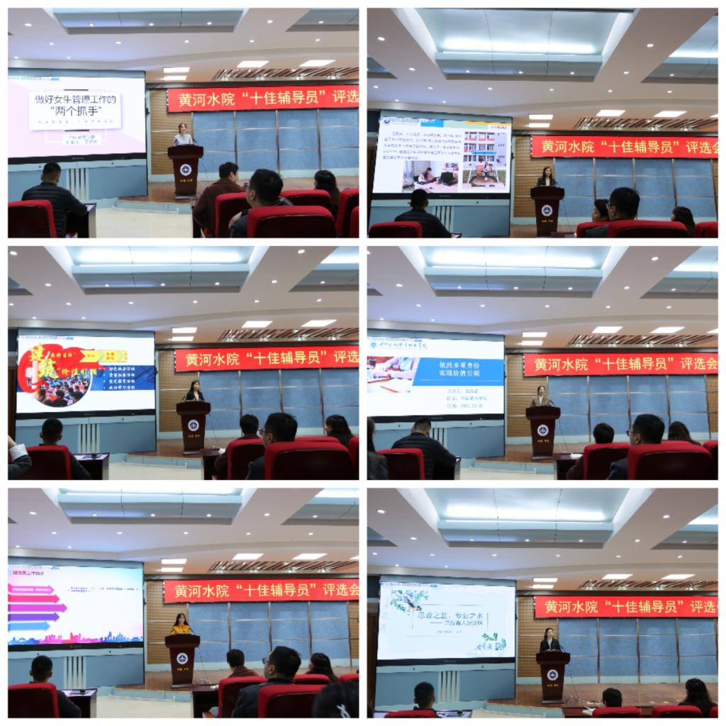 评选会上,来自全校的19名候选人按照抽签顺序依次登台,通过PPT的形式围绕思想政治教育、学业就业指导、学生日常事务管理、资助管理、心理育人等方面逐一汇报了个人的工作特色和创新亮点,全方面、多层次地展示了永利官网辅导员的魅力与风采,充分体现了辅导员们对学生工作的思考与实践。