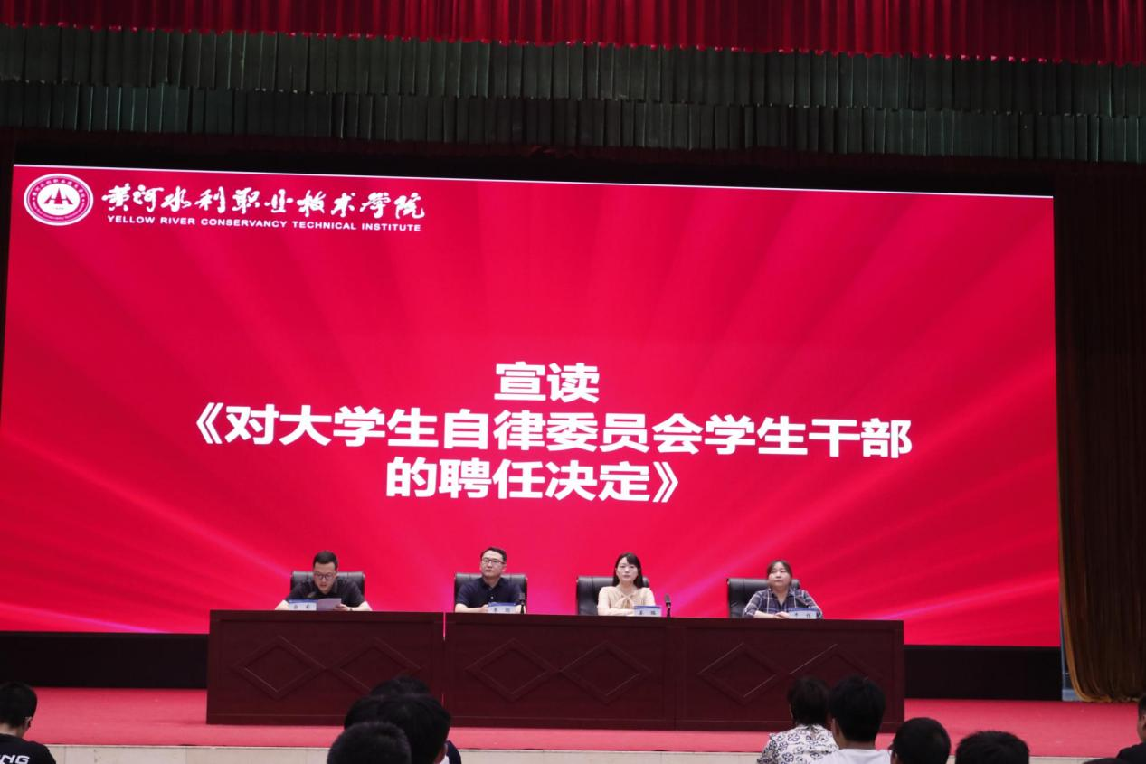 6月17日下午,永利官网第十六届大学生自律委员会学生干部聘任大会在学生活动中心举行。学生工作部部长李聪、副部长柴杉、校团委副书记姜璐出席会议,学生工作部各科室负责人和大学生自律会、各学院自律分会学生干部参加了会议。会议由学生工作部副部长牛钰主持。