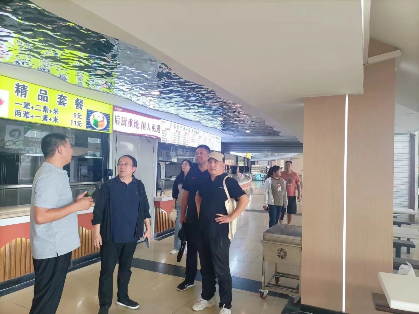 周志琦一行深入宿舍楼查看楼内设施修缮改造进度、生活基础设施配备、宿舍卫生清洁等情况;到开水房、学生食堂、洗浴中心,对学生用水安全、饮食卫生、用餐价格、洗浴条件等情况进行细致检查指导;到门岗查阅了学生返校、新生报到的安全保卫工作准备情况。他要求:开学在即,一定要用心、扎实落实各项准备工作,对检查中发现的问题和存在的安全隐患,迅速采取有效措施整改到位,全力做好服务保障等工作,为学生顺利返校学习营造平安、和谐、温馨的校园环境,确保新学期安全有序开学。