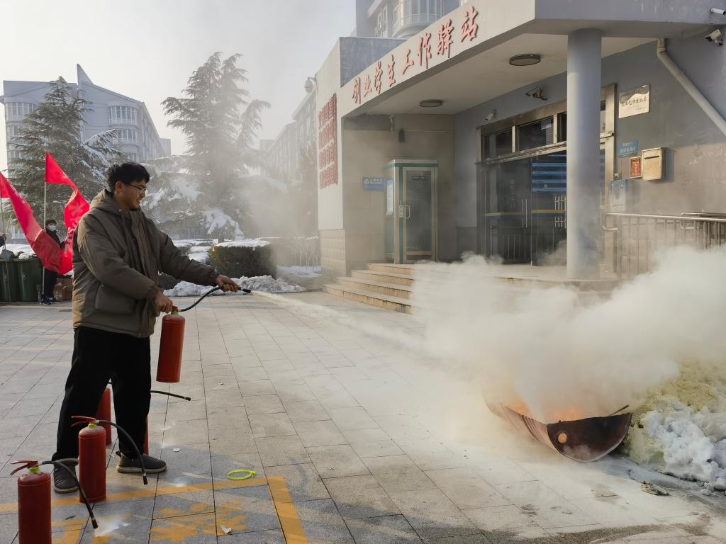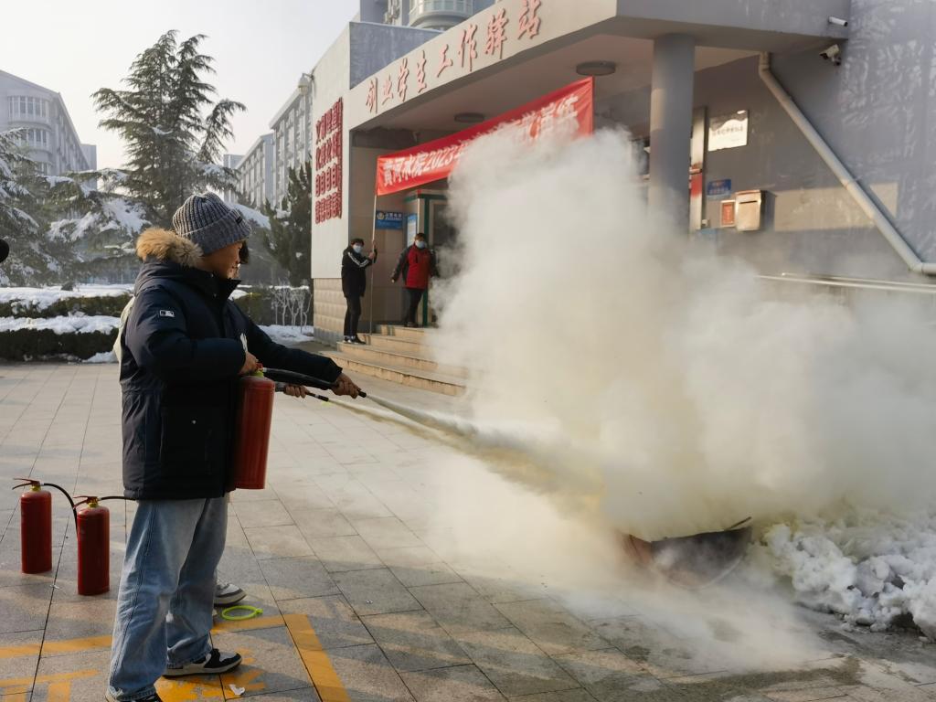 消防科科长方增勇为参与演练的师生员工详细讲解、展示了灭火器的使用方法和学生公寓火场疏散逃生的要领。同学们和公寓工作人员踊跃参与,通过亲身使用,参与演练的师生员工受益良多,能够迅速、正确使用灭火器将火扑灭。