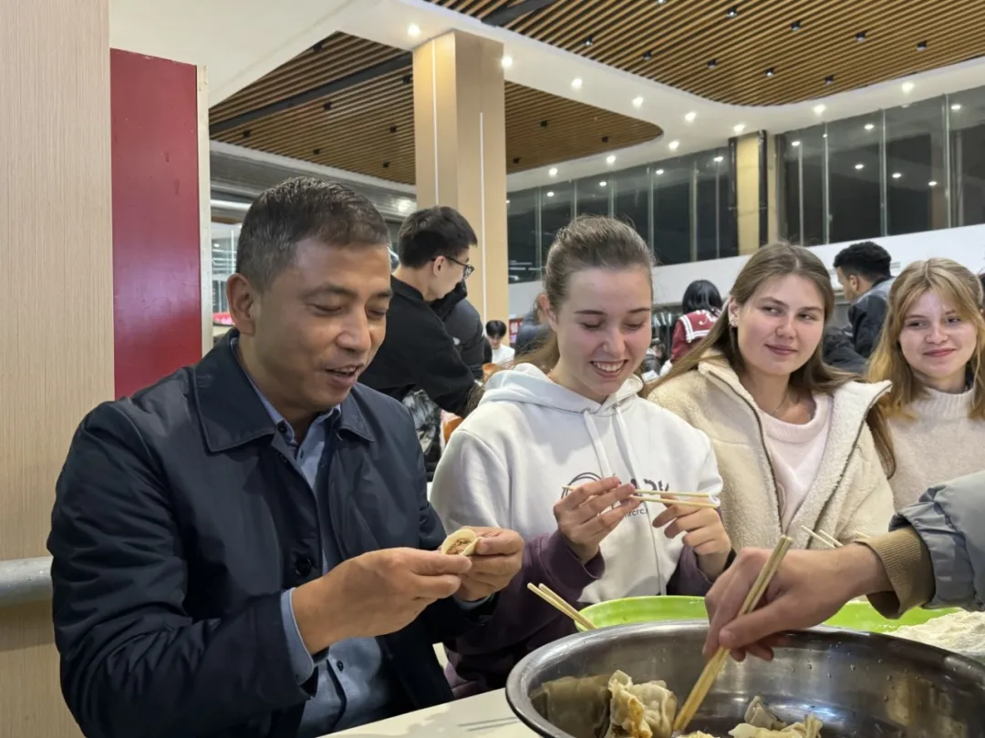 活动现场气氛热烈且温馨,校领导与师生围在桌前包饺子,关心了解同学们的学习生活情况及如何迎接即将到来的寒假和假期安排。在欢声笑语中,大家一边交流着包饺子的心得,一边分享着各自家乡的冬至习俗。游戏环节和抽奖活动将节日氛围推向了炽热的高潮,同学们丰富多彩的才艺表演诠释着青春的热情与朝气,赢得阵阵掌声与喝彩。
