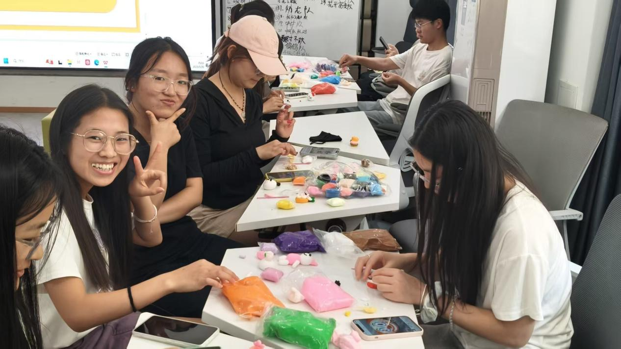 5月20日,在“指尖创意:情绪捏压厂”主题团体辅导活动中,同学们在“逢七必过”数字游戏中体会挑战带来的情绪感受;在“趣味pose”环节,大家摆出各种夸张造型,展现自我;在粘土创作阶段,五颜六色的粘土在同学们手中变幻出各种形态,有的捏出憨态可掬的小动物,有的塑造出充满想象力的抽象作品。创作过程中,大家自然而然地交流着各自的生活趣事和内心感受,活动室里洋溢着轻松愉悦的氛围。