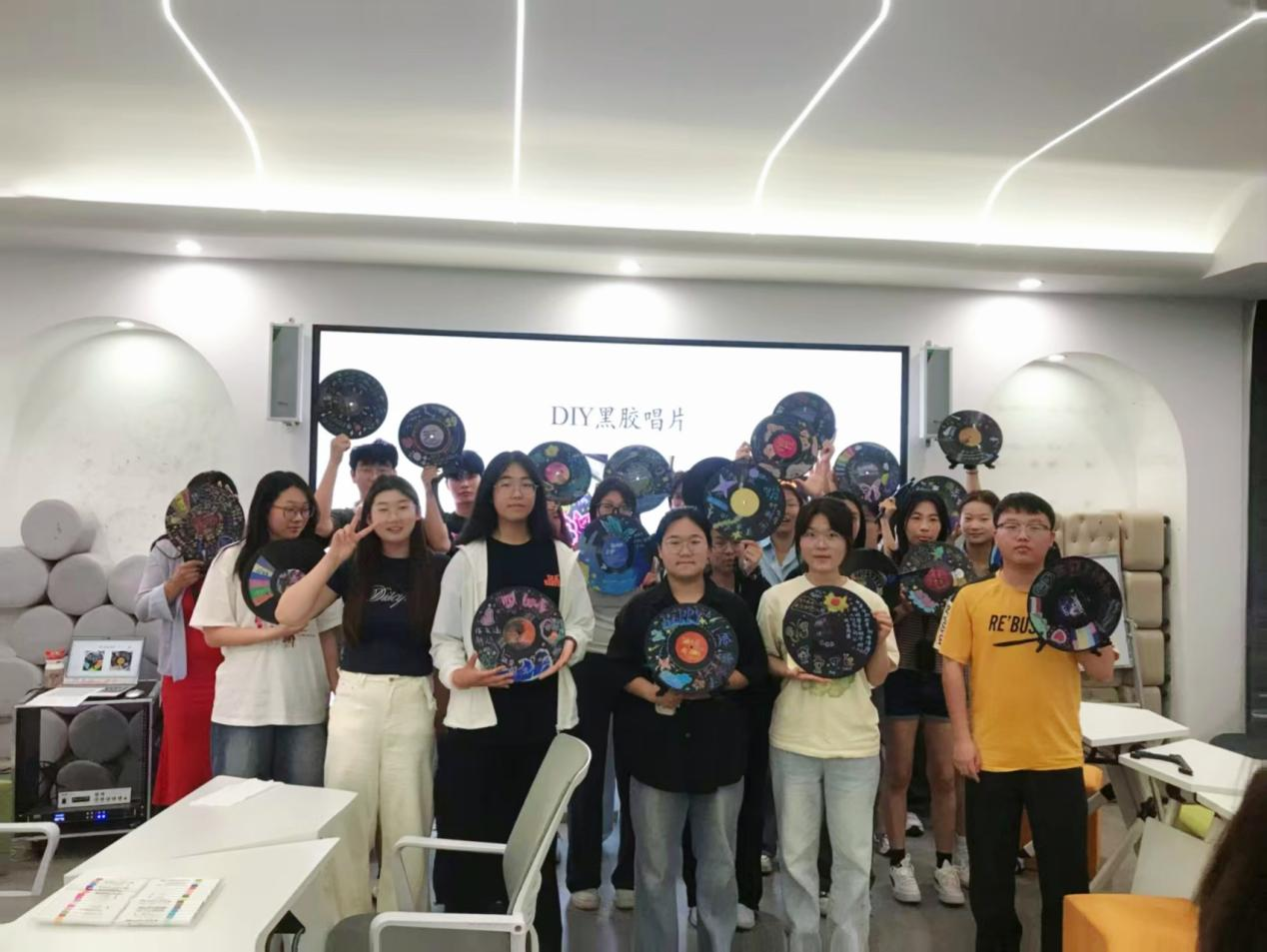 5月13日,学校开展以“音乐留声机——减压音乐会”为主题的团体辅导活动。活动以猜歌词游戏热场,现场气氛热烈。DIY黑胶唱片环节中,同学们以丙烯笔为工具,在空白唱片模板上勾勒专属图案:或绘山河星辰,或书情绪符号,将压力具象化为可触碰的艺术创作。此次活动以音乐为引、艺术为桥,通过趣味互动与创意表达,为学生搭建心灵减压的平台,助力以阳光心态拥抱校园生活。