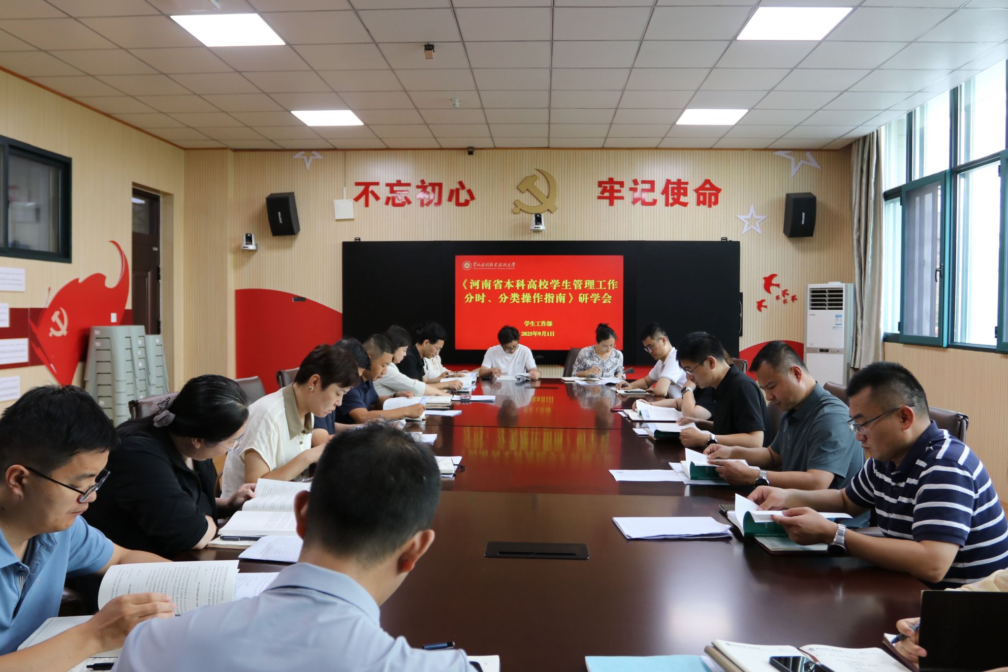 为深入学习贯彻习近平新时代中国特色社会主义思想和习近平总书记考察河南重要讲话精神,进一步提升永利官网学生管理工作精细化、规范化、系统化水平,9月1日,学生工作部在开学第一天上午组织开展《河南省本科高校学生管理工作分时、分类操作指南》专题学习会,找准新学期着力点,共同谋划升为职业本科大学第一个学期的学生工作。各学院学生工作负责领导、学生工作办公室代表以及学生工作部成员参加学习。会议由学工部部长商坤主持。